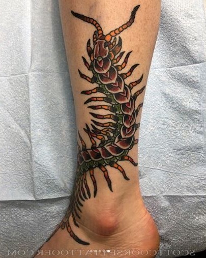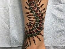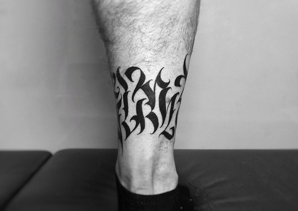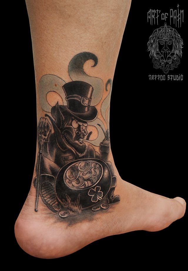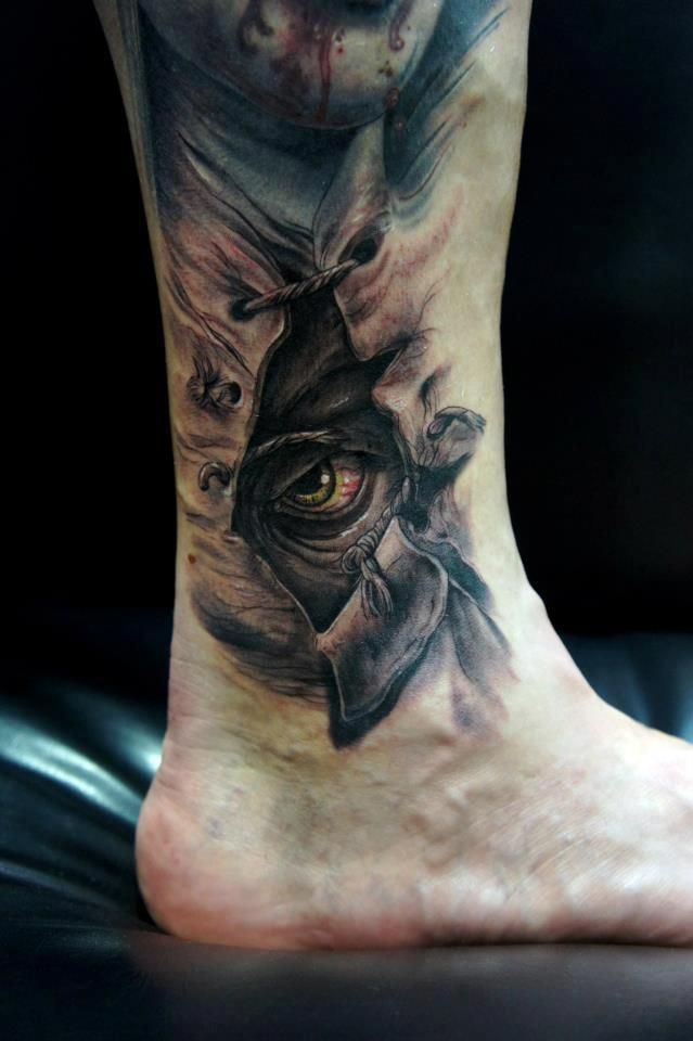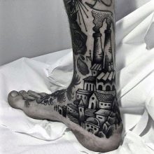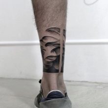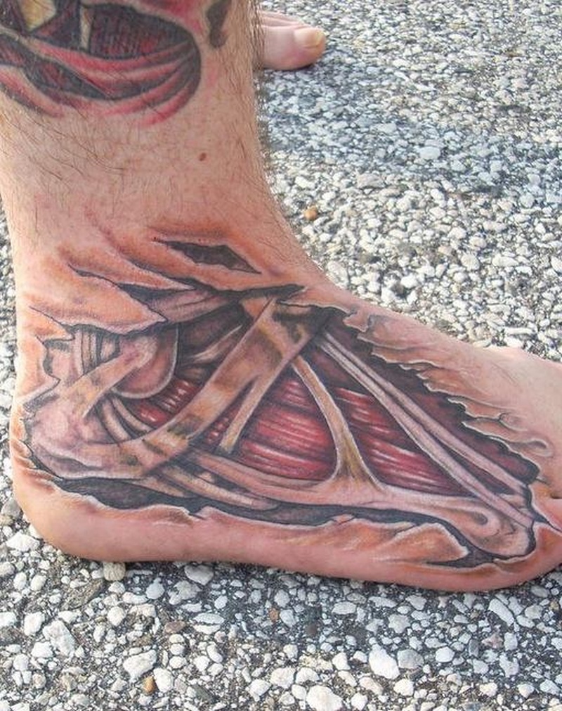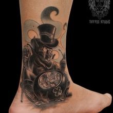 - Imagens bastante populares para homens são desenhos no estilo da biomecânica... E embora a área para tais imagens deva ser extensa, mesmo no tornozelo é possível preencher algum detalhe específico e assim decorar a perna.