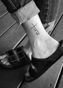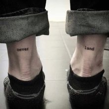 - Muitas vezes você pode encontrar todos os tipos de inscrições no tornozelo.e isso é realmente relevante. Mas os provérbios não devem ser muito longos. Algo amplo será útil. Podem ser hieróglifos simples com um certo significado e frases filosóficas curtas em diferentes idiomas. Citações favoritas, versos de poemas, datas e nomes importantes não estão excluídos. Freqüentemente, tatuagens emparelhadas são feitas nos tornozelos para fortalecer a conexão com a pessoa amada. E então a frase pode começar com um e terminar com outro.