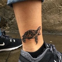 - Animais também fornecem possibilidades ilimitadas de escolha. As opções em miniatura são adequadas para parecerem orgânicas no tornozelo. Isso inclui, por exemplo, uma tartaruga, um peixe, um golfinho, um gato, um tubarão, um crocodilo, um lagarto. Se estamos falando de animais grandes, como, por exemplo, um leão, tigre, urso, lobo, então estes podem ser seus rastros.
