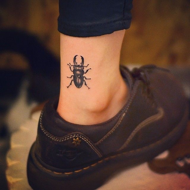 - Insetos - outra opção para uma tatuagem.Joaninhas, aranhas, abelhas, besouros, libélulas, borboletas - todos esses representantes vão caber perfeitamente nesta seção da perna.