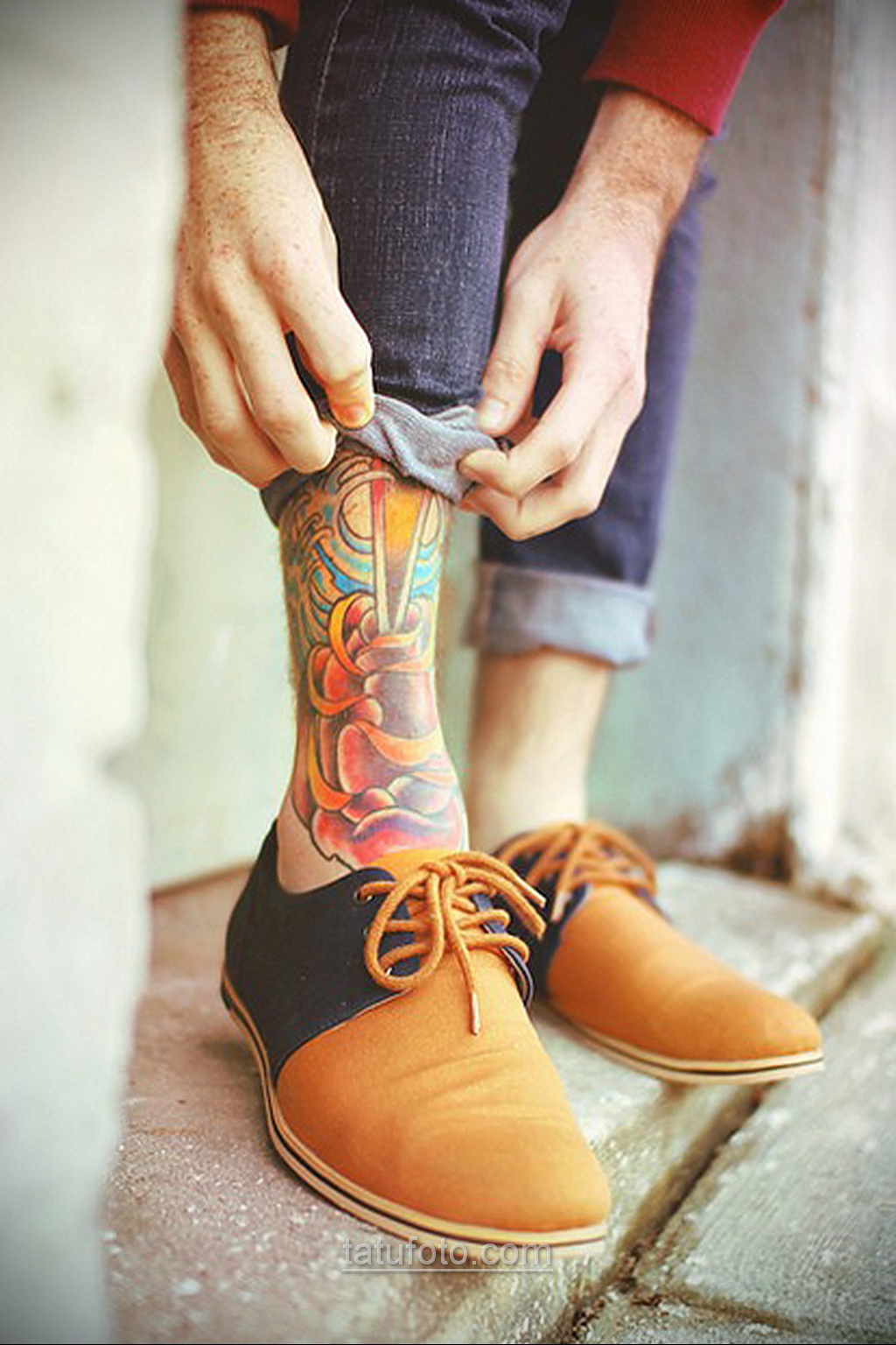 Basta escolher de 3 a 4 tons, ou até menos, para fazer uma tatuagem no tornozelo.