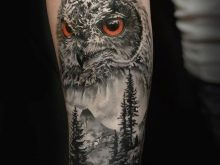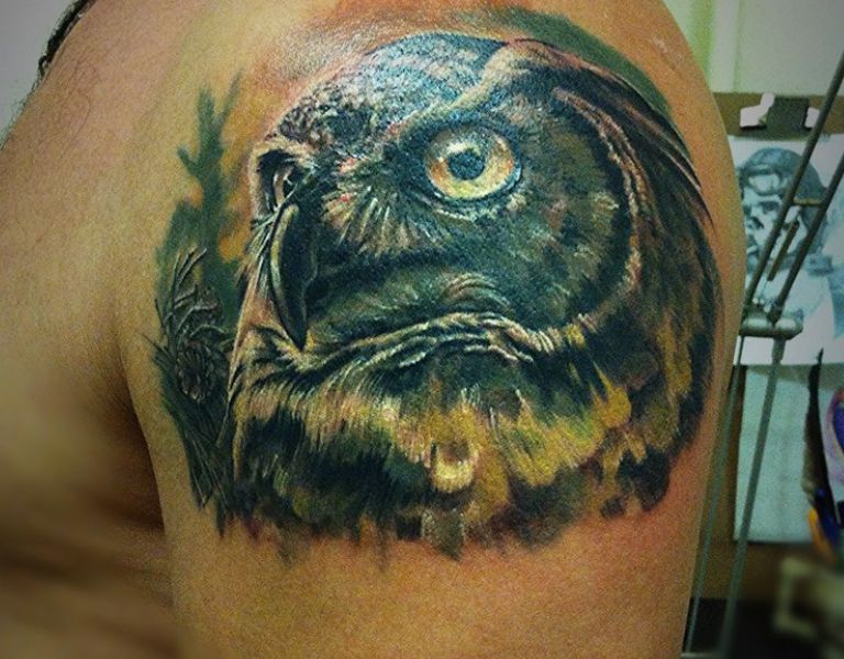 - Realismo. Um estilo que é procurado por ambos os sexos. O nome desta direção fala por si - todas as imagens são preenchidas da forma mais realista e natural possível. Corujas e corujas águia, feitas em um veio semelhante, parecem naturais e muito bonitas.