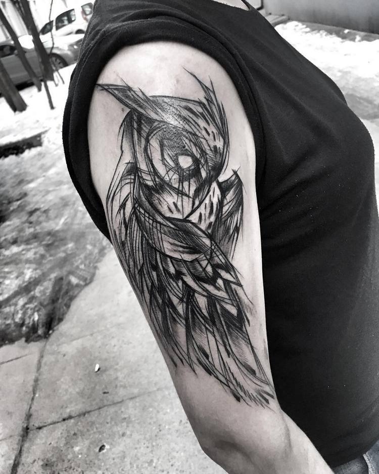 Os belos esboços que representam uma coruja sábia ou uma coruja-águia podem ser realizados em uma variedade de estilos.
