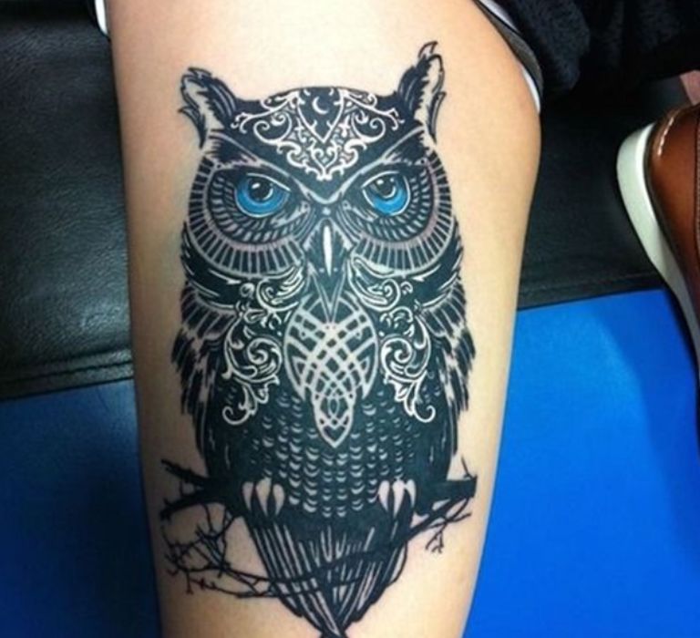 Principalmente na coxa, os homens são picados por pássaros, sugerindo um subtexto íntimo. É extremamente raro estarmos falando de um sentido religioso ou sagrado, pois este não é o local mais adequado para esses símbolos. Uma coruja na coxa pode servir como uma demonstração de autoconfiança, um desejo de encontrar uma alma gêmea.