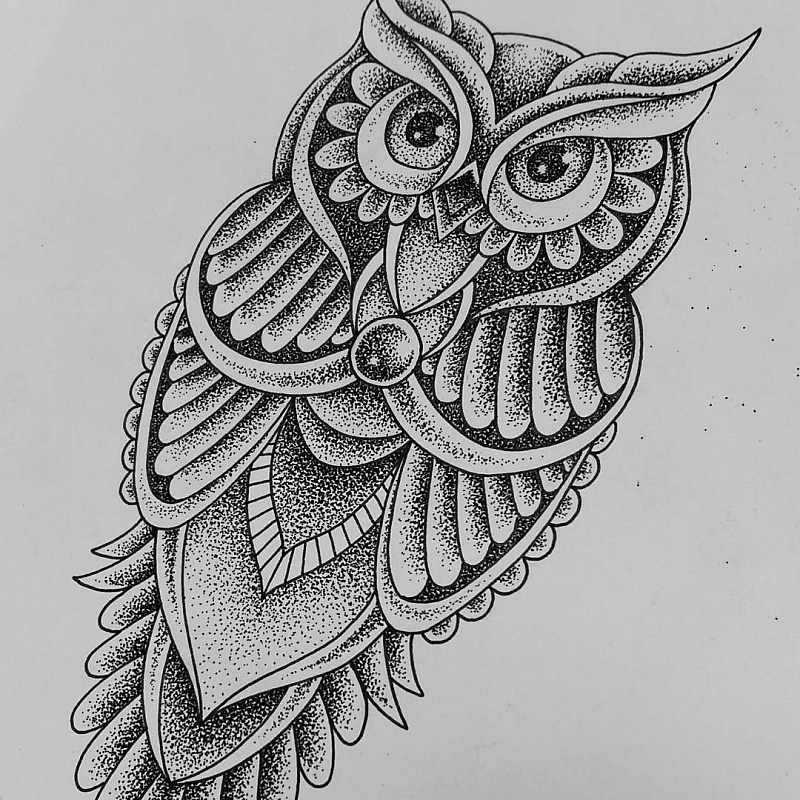 - Você também deve pensar com antecedência sobre o grau de brilho e clareza da imagem da coruja. Neste caso, deve-se levar em consideração as características fisiológicas da pele, a qualidade dos materiais utilizados pelo mestre.