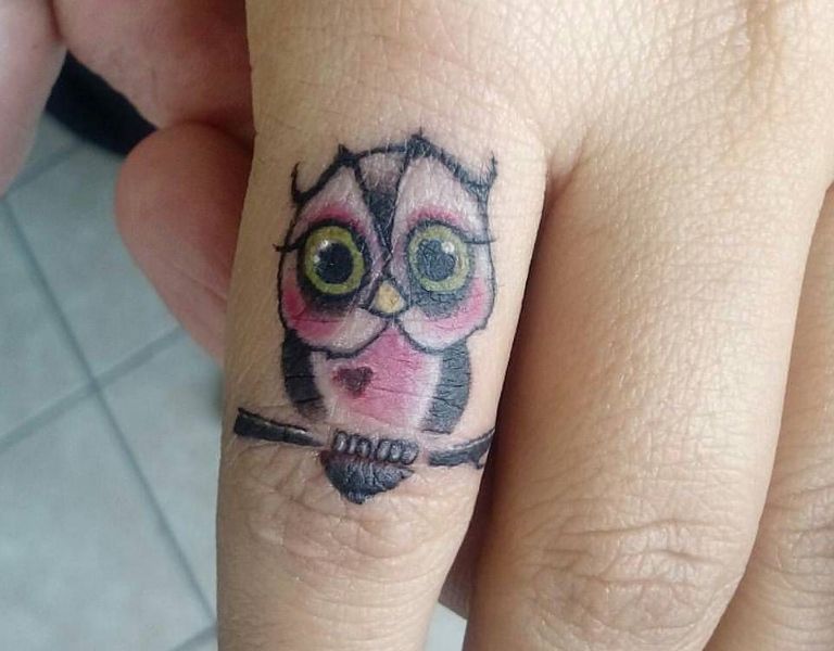 - Miniatura. Uma bela coruja águia pode ser recheada neste estilo interessante. A miniatura envolve o desenho de uma imagem muito pequena que pode ser armazenada em áreas minúsculas do corpo. Essa direção é mais frequentemente escolhida por meninas, mas os desenhos selecionados corretamente também ficam decentes nos homens.