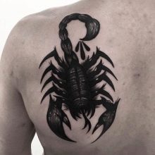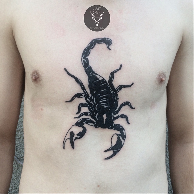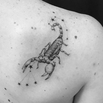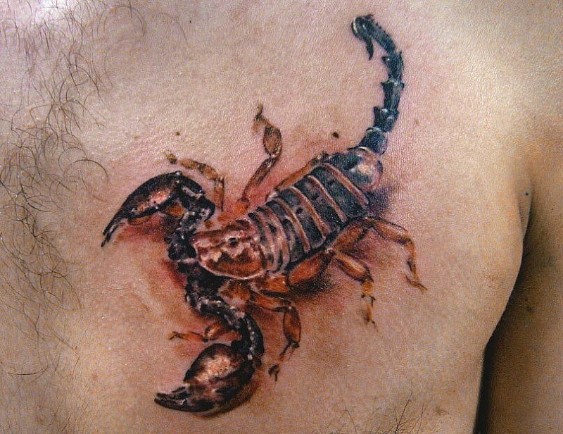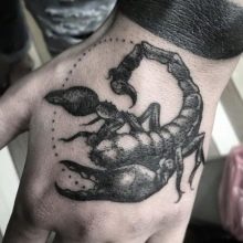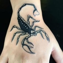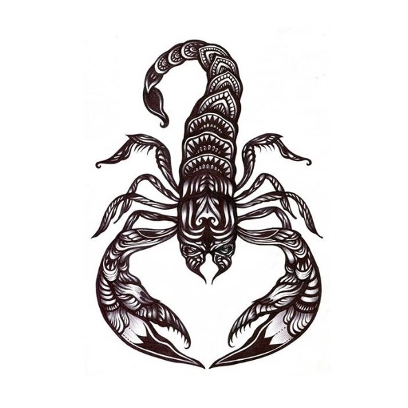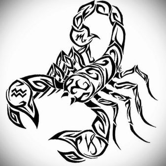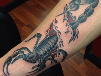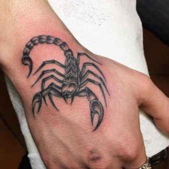 Portanto, um escorpião com garras abertas e uma picada erguida, se considerarmos tal tatuagem isolada da interpretação do exército, simboliza a originalidade, o desejo de ganhar impressões e um pouco de imprudência. Se as garras estiverem fechadas e em posição reta, e a cauda do inseto for arredondada, isso indica que o homem se encontrou calmo, equilibrado e sábio.
