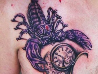 Freqüentemente, há tatuagens com esse inseto venenoso e relógio. Esse enredo tem um simbolismo tremendo - significa o fluxo rápido da vida e da vida em geral.