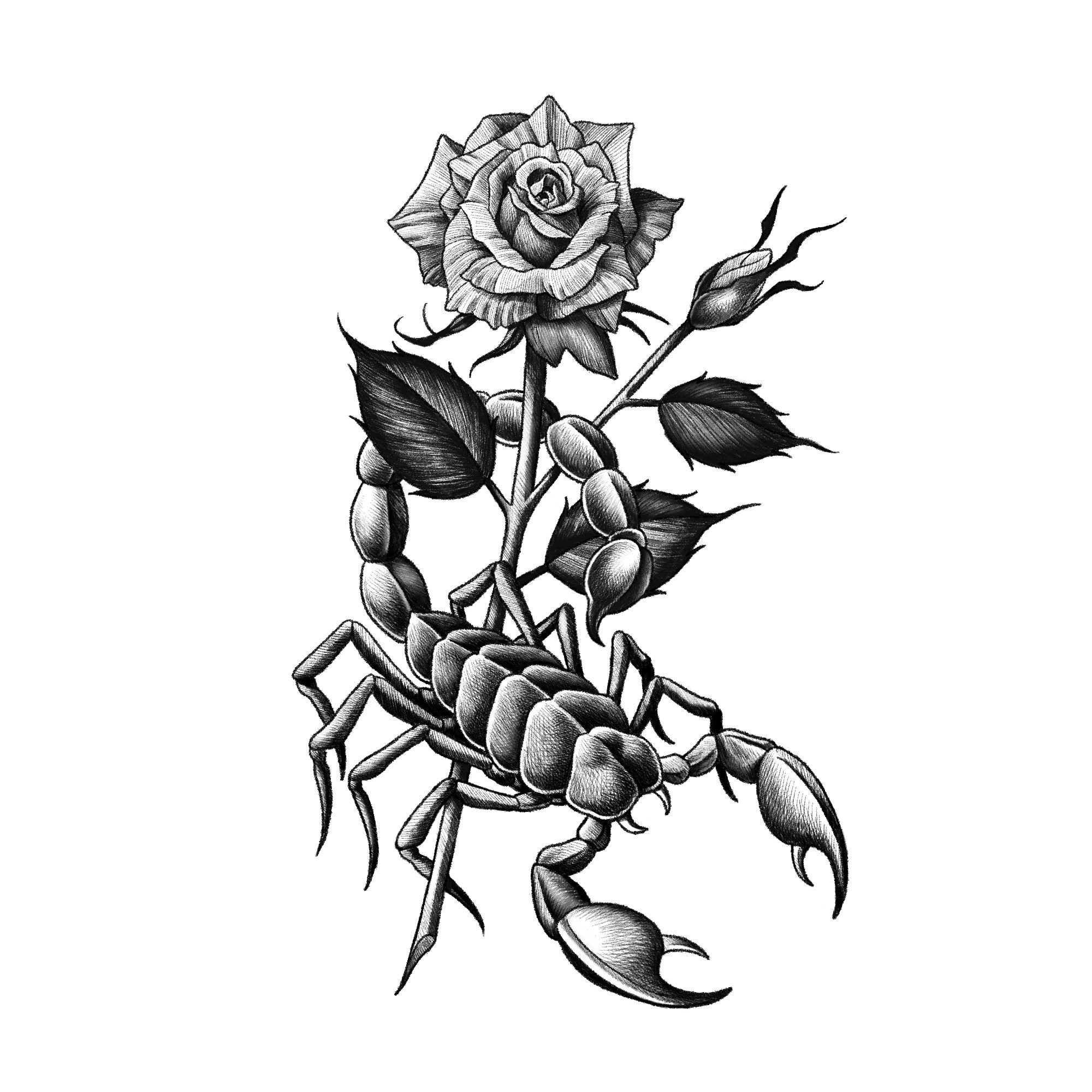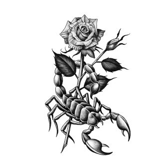 As tatuagens de escorpião para homens também são consideradas muito comuns. combinado com elementos florais. Como regra, a partir das flores, na maioria das vezes, muitas pessoas escolhem a rosa, escarlate e luxuosa. Este par é interpretado de duas maneiras. Por um lado, uma rosa e um escorpião simbolizam um amor complexo, que tem um efeito destrutivo na pessoa, e, por outro, uma lealdade infinita para com seu parceiro.