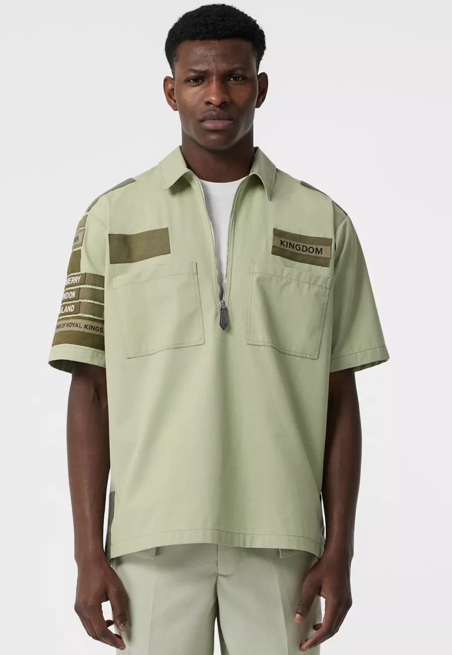La marque propose également des chemises à manches courtes avec une ou plusieurs poches plaquées au monogramme de la marque et au style militaire.