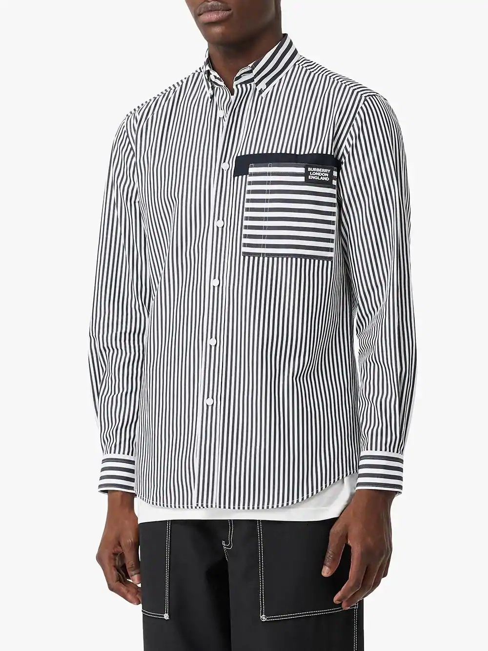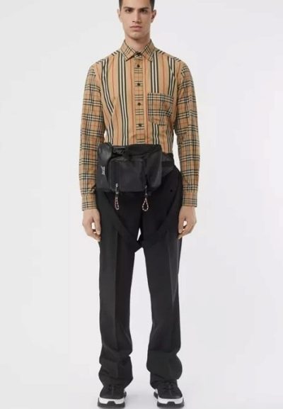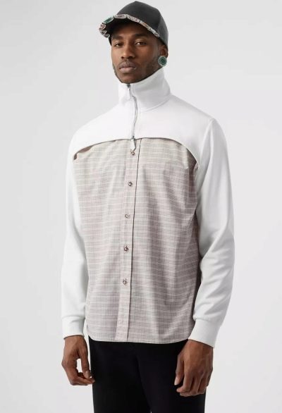 - Chemise color block plaira sûrement à un jeune homme qui suit les dernières tendances de la haute couture. Une chemise en coton Burberry avec une fermeture éclair peut compléter un pantalon classique ou n'importe quel look sportif.