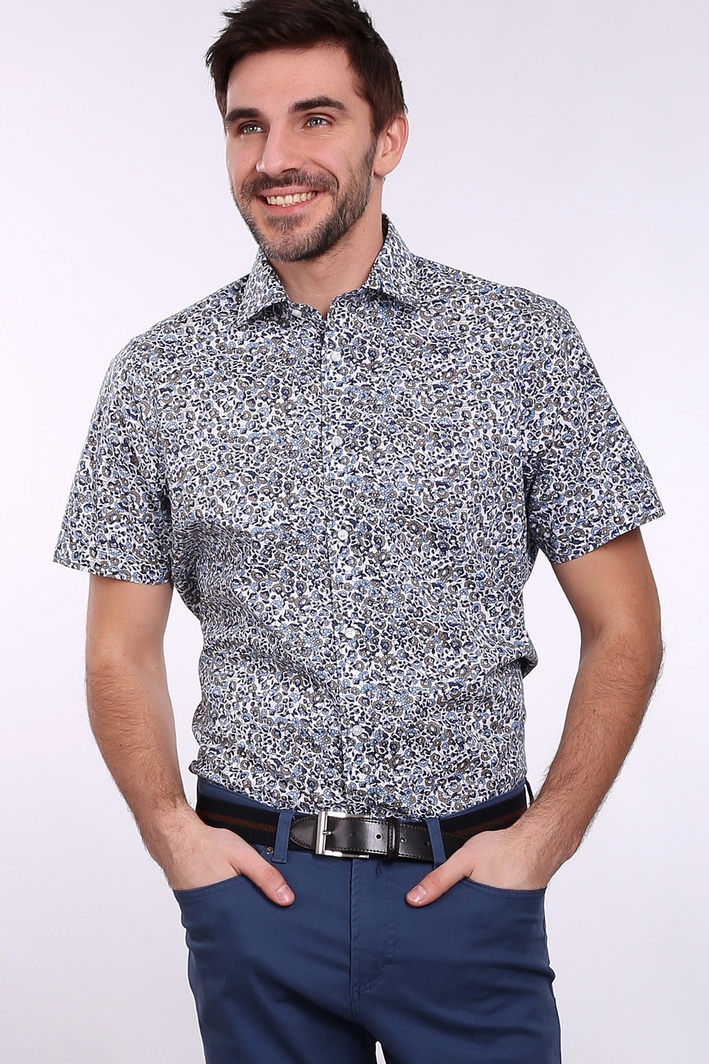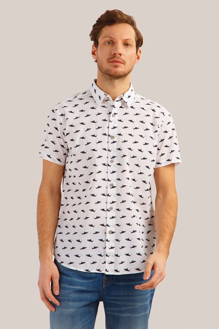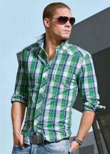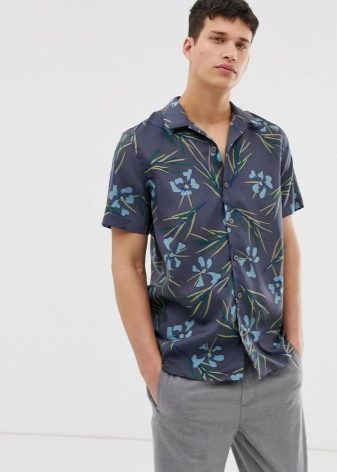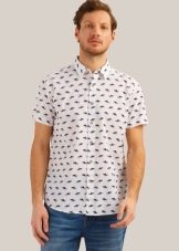 Dans la chaleur estivale, une chemise à manches courtes et un imprimé sans prétention vous aideront. De tels modèles seront particulièrement attrayants pour les jeunes.Ils peuvent être combinés avec n'importe quel pantalon et jean. En ce qui concerne les chaussures, vous pouvez utiliser des chaussures de sport de cette manière.