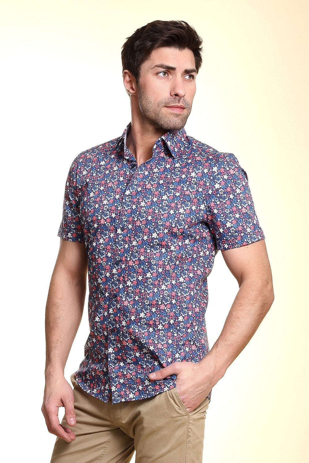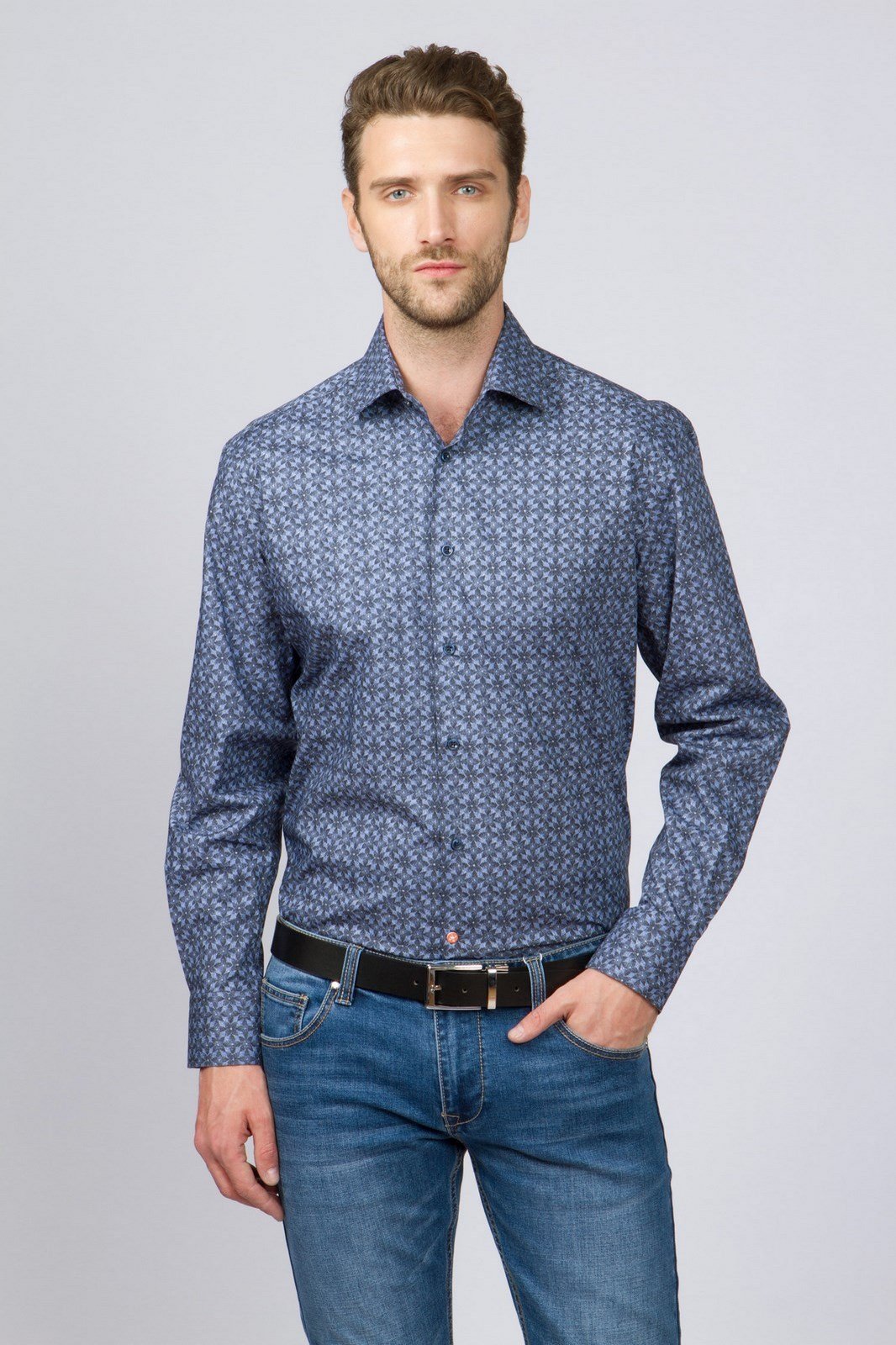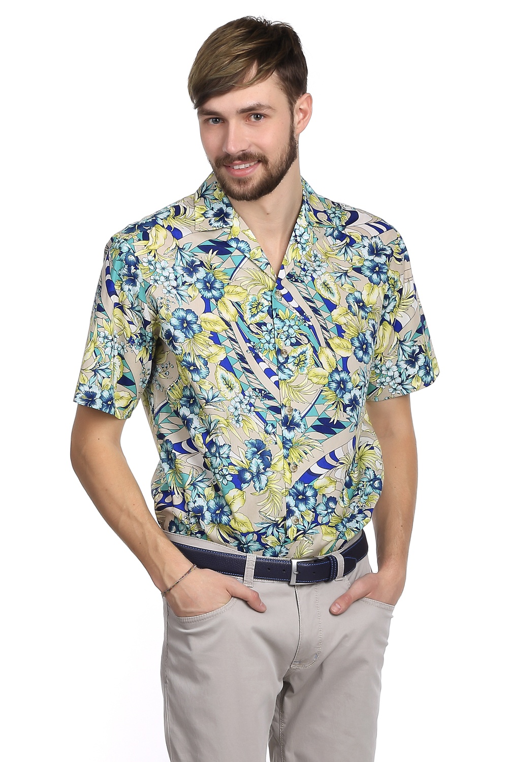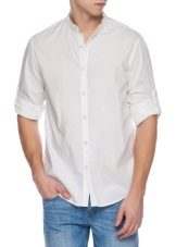 Les chemises de coupe serrée avec des coins rectangulaires ou arrondis du col ne seront pas moins intéressantes dans un look décontracté. Ils ajouteront de l'expressivité et de l'extravagance à l'image masculine. À l'aide de tels modèles, vous pouvez créer une variété d'images. Ainsi, une chemise safari est bien adaptée pour rencontrer des amis et se promener dans le parc, elle rendra un homme plus masculin et élégant. Il peut être complété par un jean dans des tons sombres ; un bracelet en maille ou en cuir convient comme accessoire. Les chaussures d'été et les mocassins peuvent être utilisés comme chaussures.