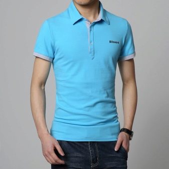 - Polo. Ce style combine à la fois les classiques et la légèreté du style. Les modèles ajustés sont particulièrement demandés par les hommes, qui sont idéalement combinés avec des pantalons formels. Les polos à col V, fermetures originales et poches sont à la mode cette saison. Le tissu froissé est généralement utilisé pour les coudre. Il existe également des modèles avec des éléments décoratifs tels que la doublure sous le col et les poignets, ils vous permettent de créer un look élégant.