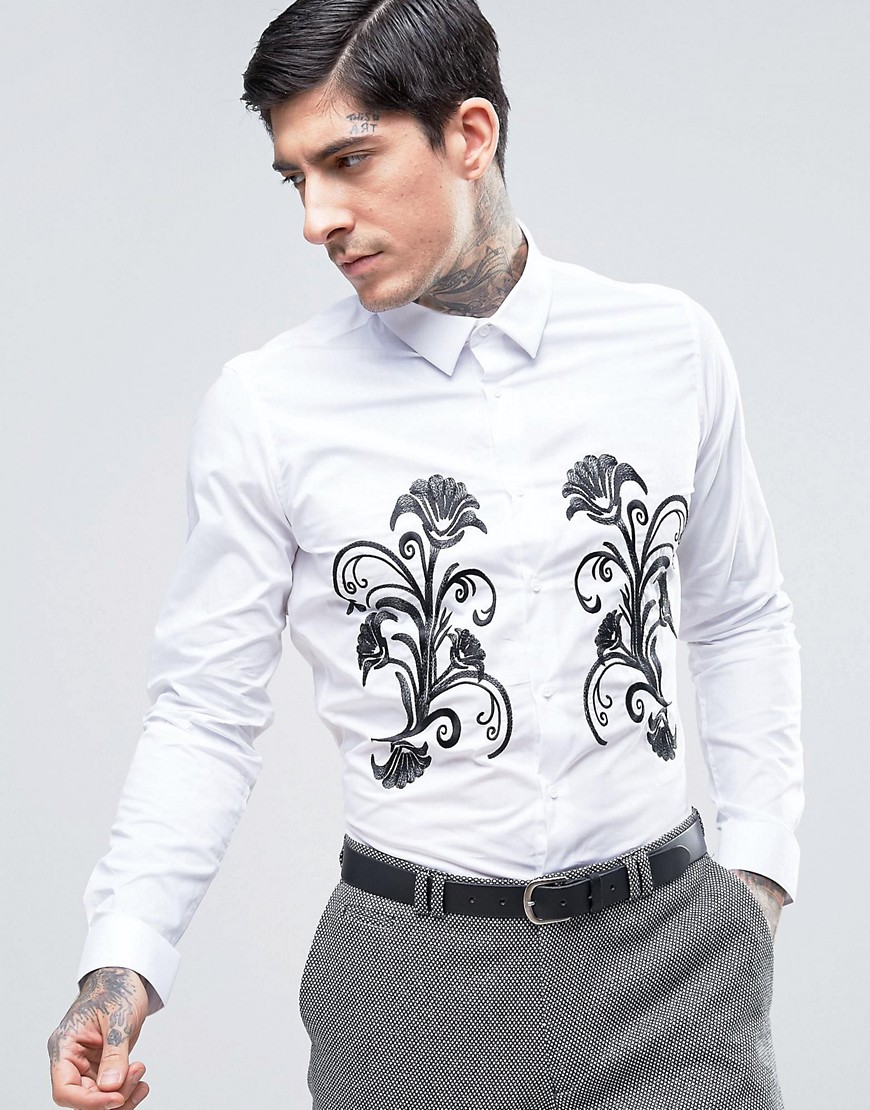 Les chemises blanches avec broderies peuvent être combinées avec un pantalon de tailleur ou un jean, en complétant le look avec des sandales d'été.