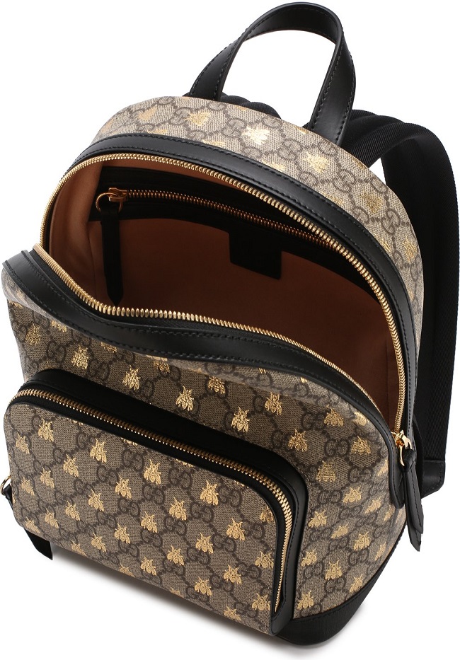 - Le design original de ce modèle séduira les personnalités hors du commun qui aiment se démarquer. Sac à dos en textile beige et orné du logo GG sur toute la surface. Les fermoirs du bracelet sont en cuir marron. Le produit est décoré d'imprimés lumineux et de dessins d'abeilles, de tigres, de paysages urbains et d'autres personnages. Poche extérieure imprimée du logo de la marque et du design signature.