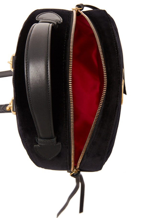 - Un élégant sac à dos en cuir véritable noir a l'air très cher et élégant. Malgré le design simple et classique, le produit a l'air assez accrocheur. Logo d'entreprise Gucci de deux lettres couvre toute la surface du sac. Un patch en caoutchouc avec le nom de la marque apparaît sur le dessus.
