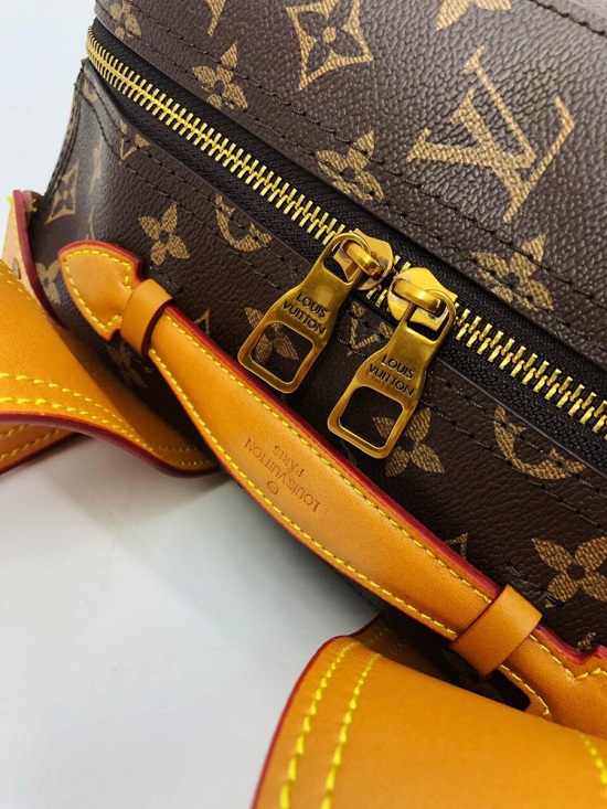 - Sac à dos compact d'une célèbre marque française Louis Vuitton en cuir combiné. Le devant du produit est décoré du logo de l'entreprise - des carrés noirs et gris avec le nom de la marque.Le dos est en cuir noir véritable. Les bretelles larges, réglables en longueur, offrent un confort d'utilisation. Poche extérieure zippée. À l'intérieur, il y a une section pour les documents et une poche pour les petits objets.