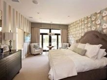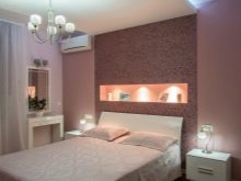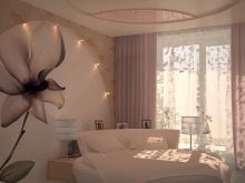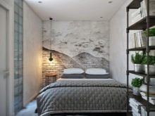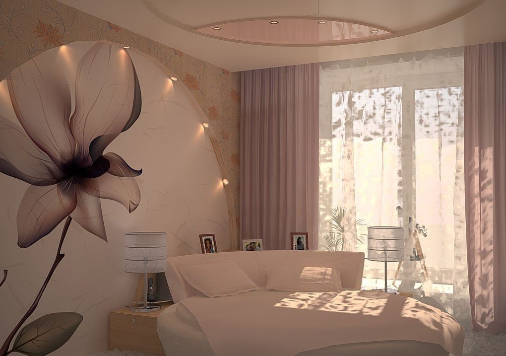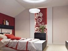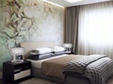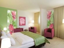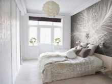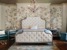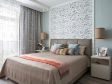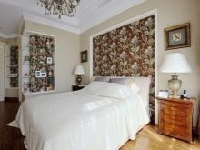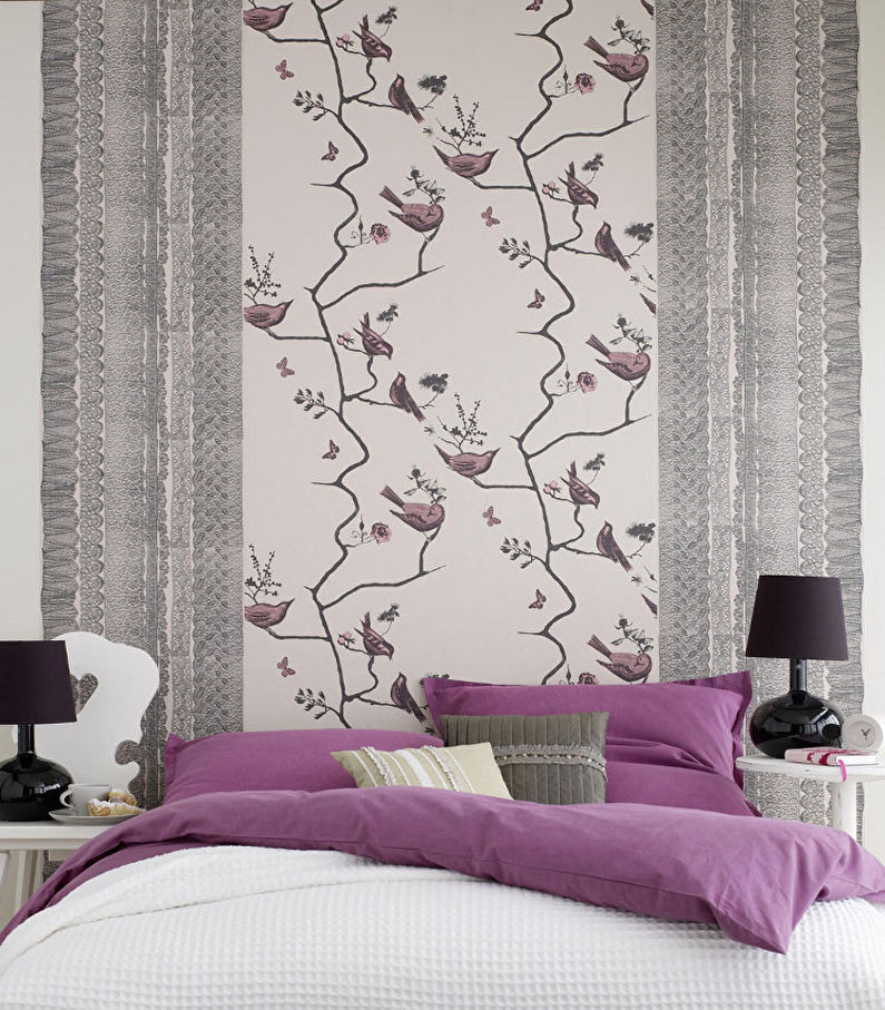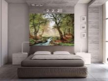 - Vous pouvez également mettre en évidence la zone du lit, si vous collez une bande verticale de papier peint photo sur la tête de lit sur toute la hauteur du mur.