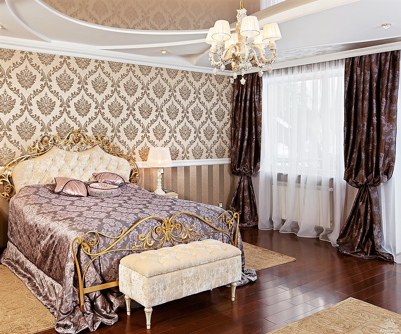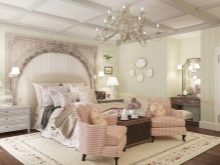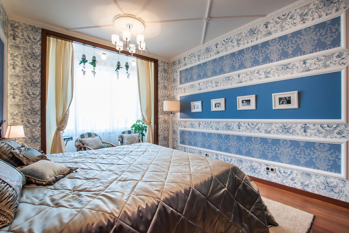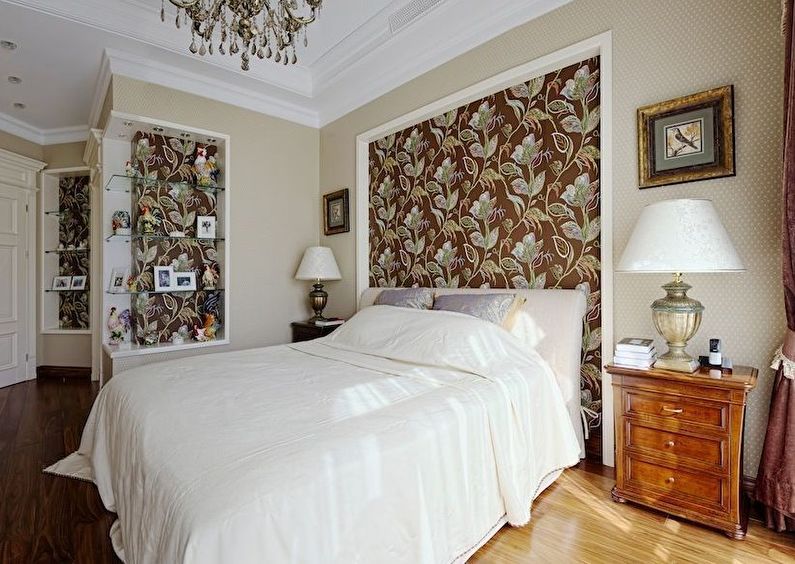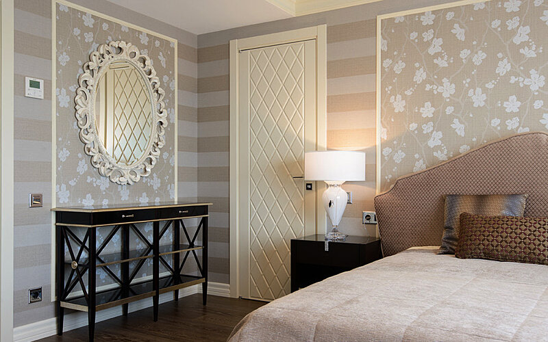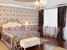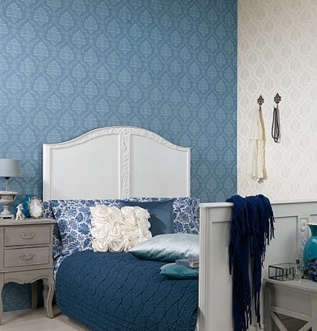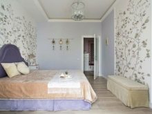 Si vous envisagez de décorer l'un des murs dans un intérieur conçu dans le sens shabby chic, provence, colonial, style classique, il est préférable de combiner le papier peint avec différents types de motifs. Par exemple, encadrez un ornement floral avec du papier peint à rayures ou uni. Au lieu de fleurs, vous pouvez utiliser des dessins avec des monogrammes.