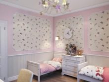 - De 2 types de papier peint en 3 bandes. Une conception similaire pour différents murs convient aux intérieurs modernes. Par exemple, dans une chambre d'enfant, vous pouvez coller une bande de papier peint avec des personnages de dessins animés ou des animaux au milieu du mur. Et au-dessus et en dessous, il y a des bandes de papier peint unies, comme pour encadrer la partie à motifs. Cette combinaison nécessite un espace assez volumineux, où la plupart des murs restent libres. Sinon, toute l'essence de la combinaison de papier peint est perdue.