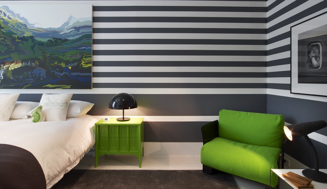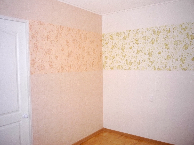 Quant à placer deux types de papier peint sur des murs différents, cette option est également possible. Mais il est organisé dans l'écrasante majorité des cas dans un sens horizontal.