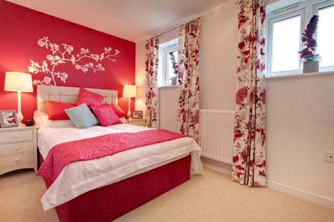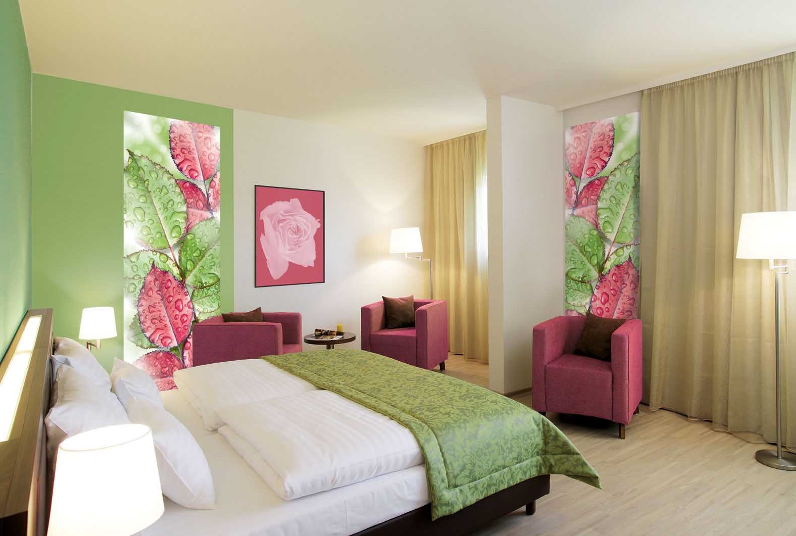 - décoration murale en couleur avec d'autres éléments intérieurs, par exemple des meubles rembourrés, des meubles d'armoire et des textiles.