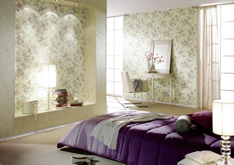 - Vinyle sont les plus courants. Mais en raison du fait que ce matériau est plutôt peu perméable à l'air et à l'humidité, il n'est pas recommandé de le coller sur la chambre à coucher.