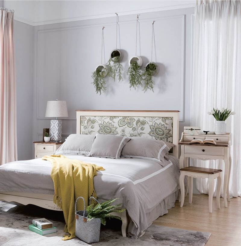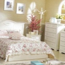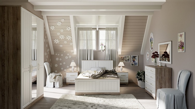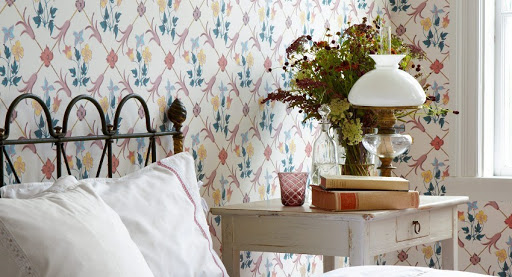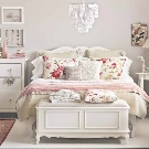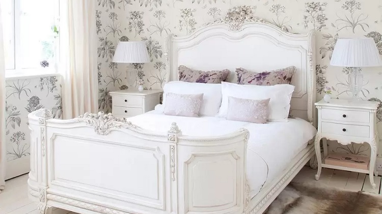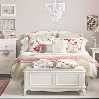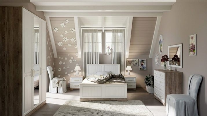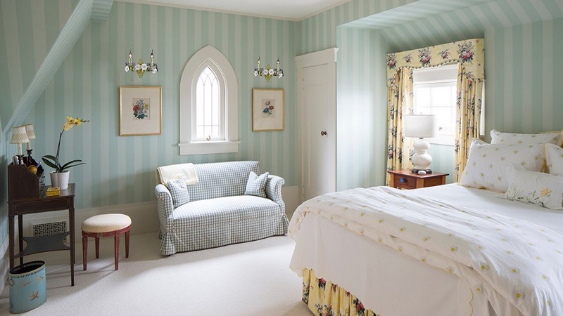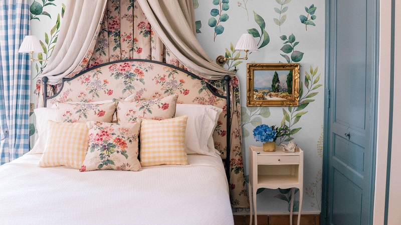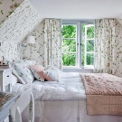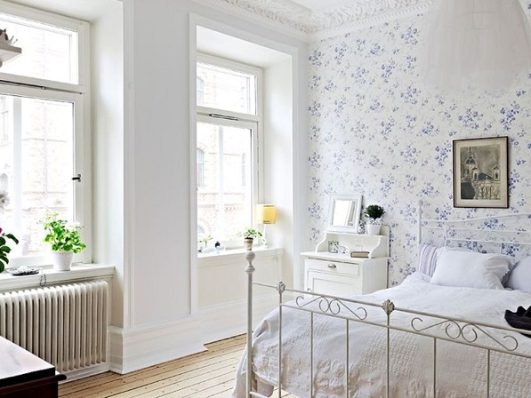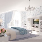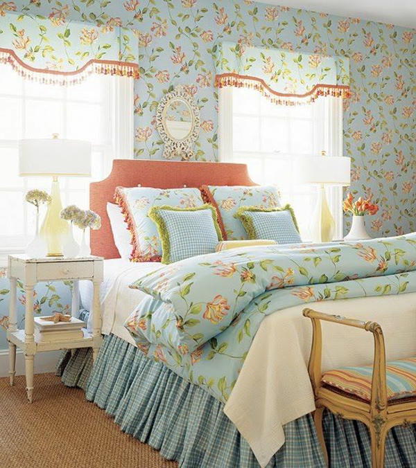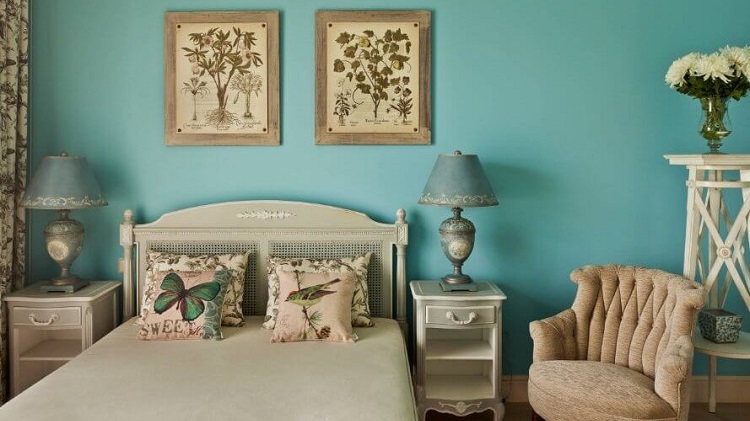 Il convient de noter qu'avec un tel design, la pièce n'aura pas l'air fanée, car les motifs floraux ajouteront du charme à la pièce. Ils doivent être présents dans l'ornement du papier peint, la broderie est encouragée. Le matériau de finition de la chambre peut être une nuance délicate avec des accents lumineux qui ajouteront un peu de contraste.