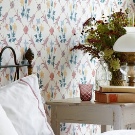 Le type suivant sur la liste est le papier peint non tissé, qui est souvent acheté comme base pour la peinture. Un tel matériau a de nombreuses textures, ce sera donc un bon choix pour le style provençal. Les principaux avantages sont le fait que le papier peint s'adapte bien à la surface, qu'il peut masquer les défauts et qu'il résiste en outre à l'usure. Un tel revêtement nécessite un entretien minutieux et fréquent en raison de la convexité des éléments, où la poussière s'accumule constamment. Mais si vous cherchez du papier peint pour une petite pièce, ce ne sera pas un problème.
