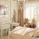 Les photos doivent être encadrées dans un cadre doré, qui se démarquera dans un intérieur pastel, ce qui est très approprié. Un lustre en cristal gracieux deviendra une véritable décoration de la pièce. Si la pièce a un miroir, choisissez un cadre en bois sculpté.
