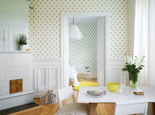 Le papier peint en vinyle attire beaucoup d'attention sur lui-même, ce qui invite à une variété de reliefs et de schémas de couleurs, parmi lesquels il existe de nombreuses options qui s'intègrent parfaitement dans le design provençal. À l'aide d'une telle finition, vous pouvez imiter des textiles et du plâtre, ce qui constitue une excellente solution pour décorer une pièce. En termes de performances, le principal avantage du papier peint vinyle est son multicouche, il offre donc une isolation thermique et phonique.