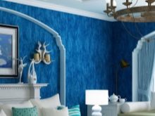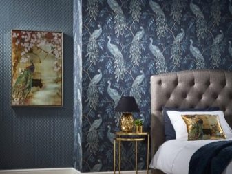 Pour les styles provençal et campagnard, les nuances de bleu azur et lavande sont familières. Le papier peint avec une dispersion de petites fleurs délicates sur un fond bleu ou, au contraire, avec des iris bleus et de la lavande sur du blanc ou du beige, est particulièrement bon. Style chinoiserie, si à la mode dans les maisons de la noblesse européenne au cours des siècles passés, s'applique aujourd'hui pour un intérieur éclectique avec une note orientale. Et il se caractérise par un papier peint bleu peint avec des pivoines roses, des cynorrhodons en fleurs, des cerises.