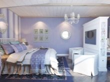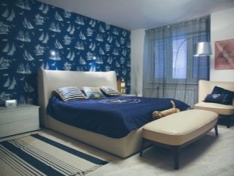 Bien sûr, vous ne pouvez pas vous passer de toutes sortes de nuances de bleu pour décorer une chambre sur un thème nautique. Rayures de différentes largeurs, vagues, papier peint avec des impressions d'ancres et d'autres attributs de navires, avec des mouettes ou des habitants de la mer - ce décor est souvent utilisé pour les chambres de garçons. Et des panneaux de papier peint avec une vue magnifique sur la mer ou un paysage de montagne dans une brume bleue brumeuse renforceront l'effet de détente si nécessaire dans la chambre.