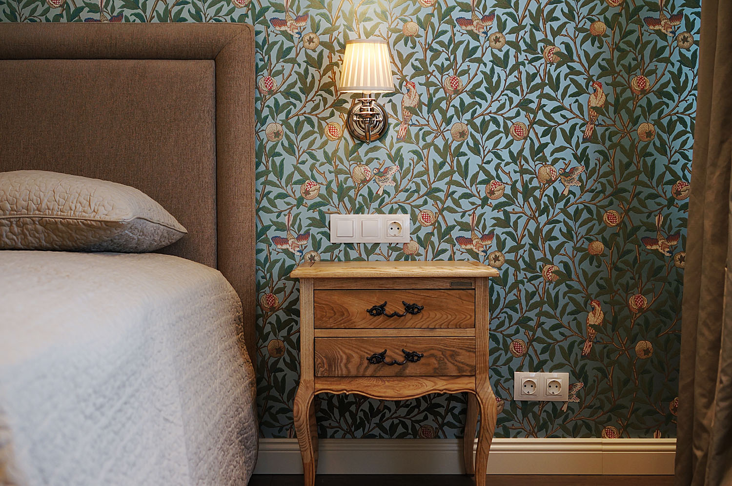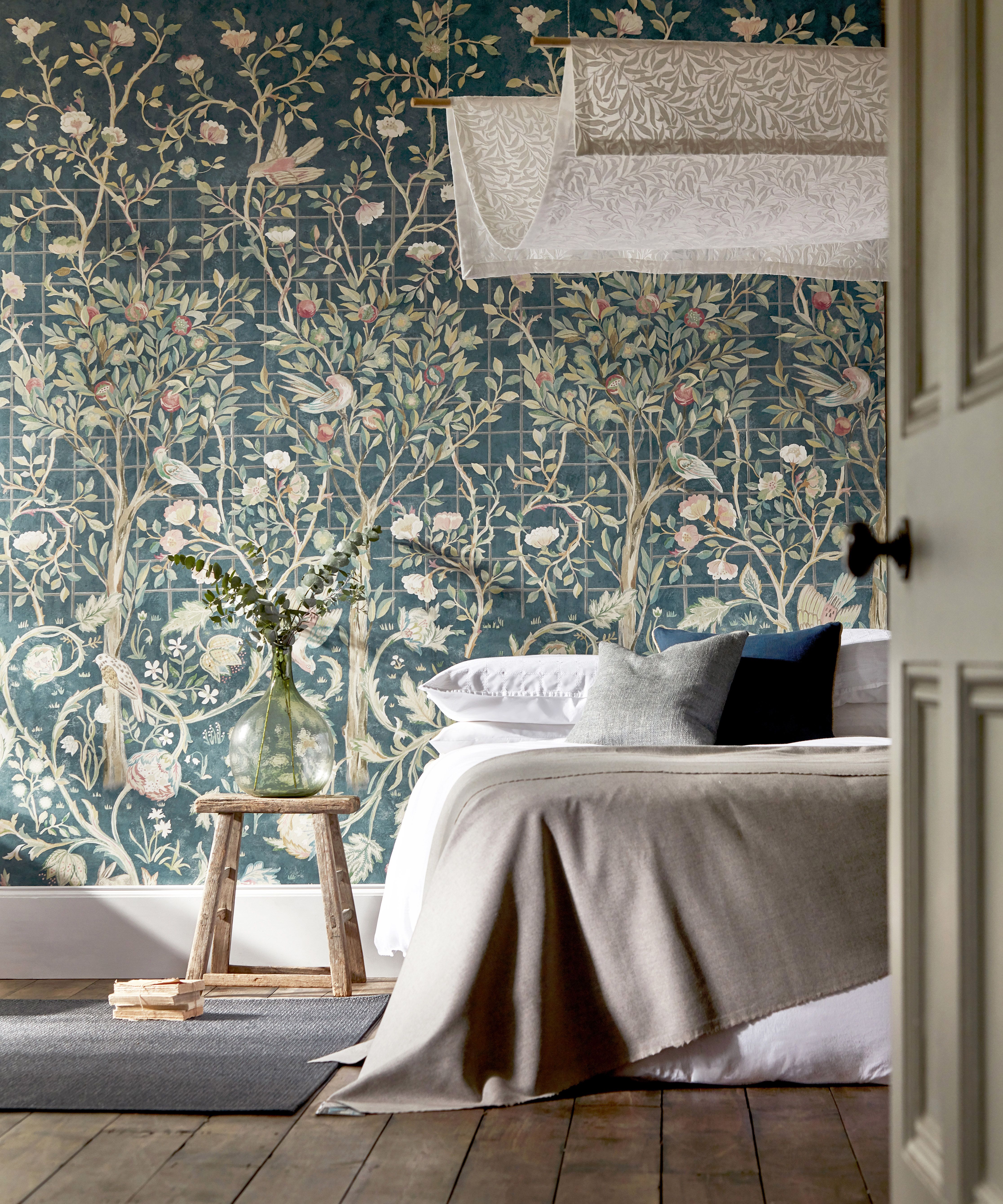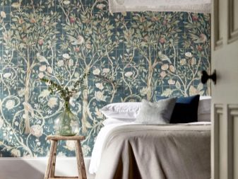 Une autre référence à la Grande-Bretagne est le célèbre papier peint Morris & Co, rempli de motifs fantaisistes de plantes, de fleurs et d'oiseaux sur des fonds colorés (y compris bleu et bleu). Ces papiers peints, basés sur des dessins du 19ème siècle, sont encore produits aujourd'hui.
