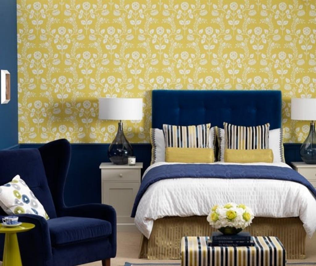 Combinaison de monophonique et papier peint avec ornement semble toujours harmonieux.
