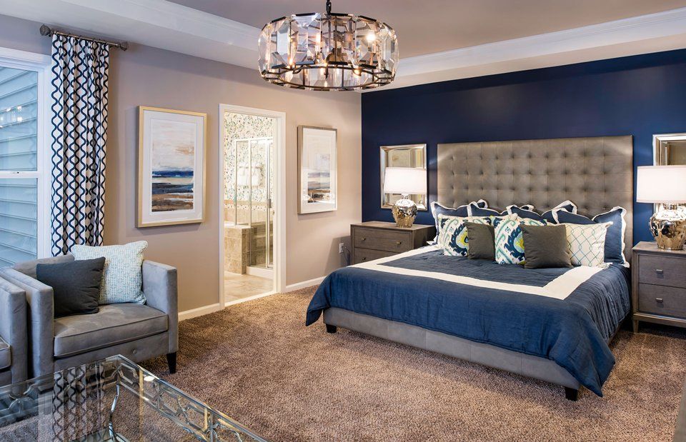 Cette combinaison est très calme, mais pour qu'il n'ait pas l'air trop terne et froid, ajoutez des teintes chaudes (terre cuite, brun doré). Les tons clairs de gris se marient bien avec le bleu : gris perle, acier, argent. Il est préférable d'aménager la chambre du côté sud de la maison de cette manière.