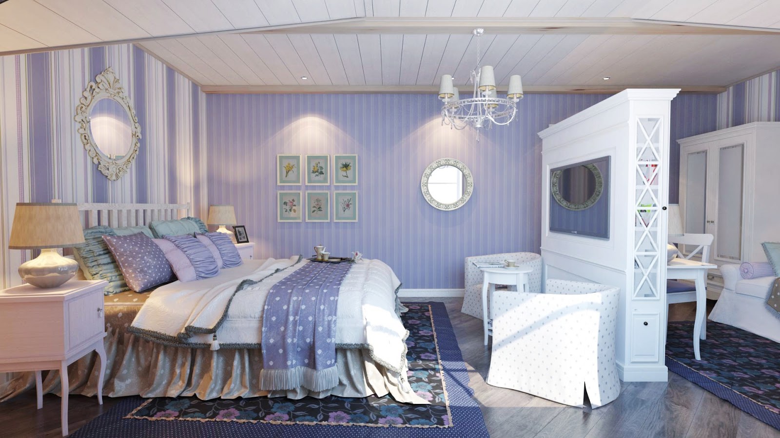 Pour un aperçu du papier peint bleu dans la conception de la chambre, voir la vidéo ci-dessous.