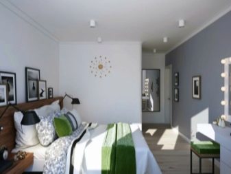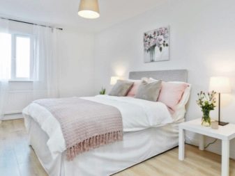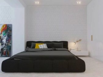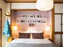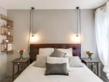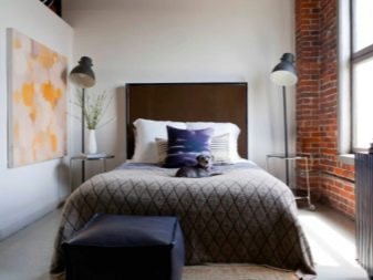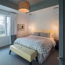 Si la pièce est petite, il n'est pas recommandé d'utiliser de grandes lampes ici, car elles attireront l'attention de l'élément central, dont le rôle est joué par le lit. Compte tenu des particularités de la chambre à coucher, il est nécessaire de créer ici l'atmosphère la plus apaisante. Par conséquent, il ne faut pas utiliser de lumière vive et agressive.