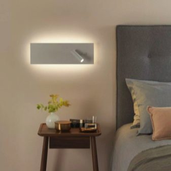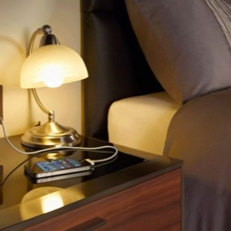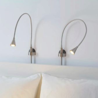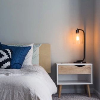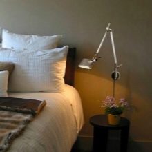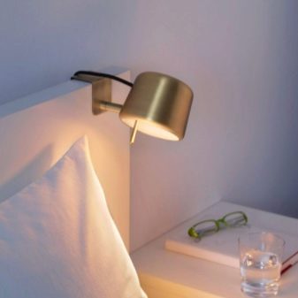 Une caractéristique distinctive des lampes est qu'elles se caractérisent par de petites dimensions, elles occupent donc un minimum de place dans l'espace de la chambre... Ils peuvent être situés à la fois sur la table de chevet elle-même et fixés au mur. Tout dépend des caractéristiques des modèles, des préférences personnelles du propriétaire et du style de l'intérieur.