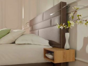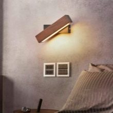 Les lampes, qui sont fixées sur la tête de lit en bois du lit, sont assez élégantes et inhabituelles. Une telle lampe aura fière allure avec style minimalisme, cependant, il ne conviendra certainement pas à la décoration d'intérieurs avec style provence et pays, qui se distinguent par une grande quantité d'espace libre.