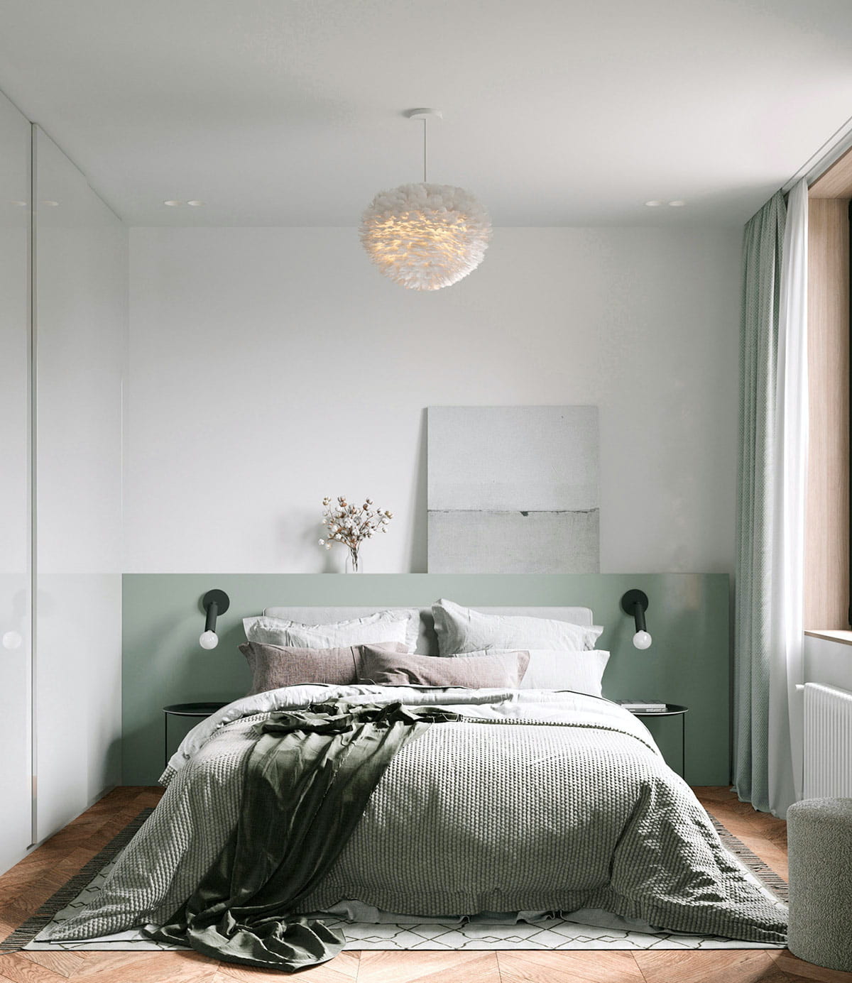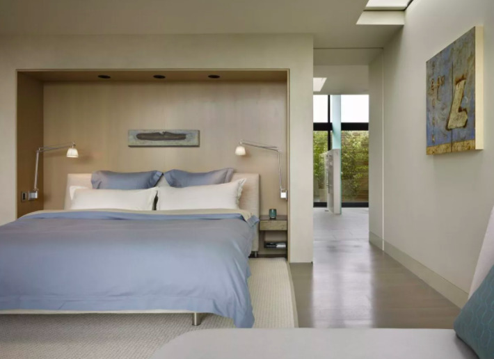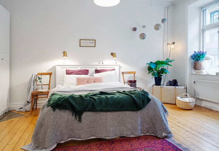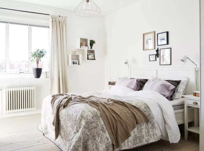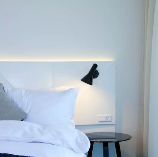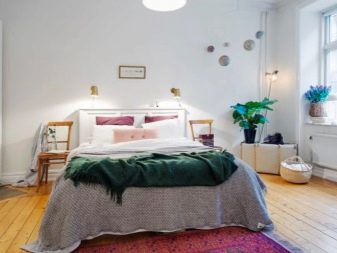Si la pièce est établie en style scandinavealors il est préférable de choisir des lampes de chevet qui sont intégrées dans la tête de lit. Grâce à cela, vous pouvez choisir la hauteur et le niveau d'éclairage optimaux qui conviendront au goût des propriétaires.