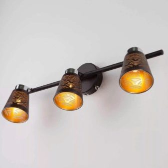 - Taches... Le principal avantage de tels appareils est que la lumière de leurs ampoules peut être dirigée dans n'importe quelle direction. De plus, il existe sur le marché des modèles pour lesquels vous pouvez régler le niveau d'éclairage, ce qui est extrêmement important pour une chambre. Si nécessaire, vous pouvez utiliser des modèles spéciaux de spots dotés d'un flux lumineux bidirectionnel.