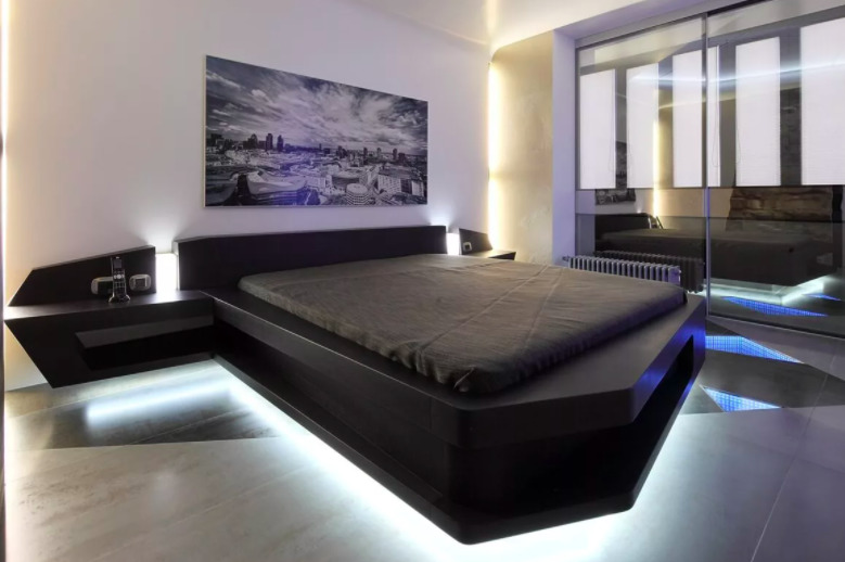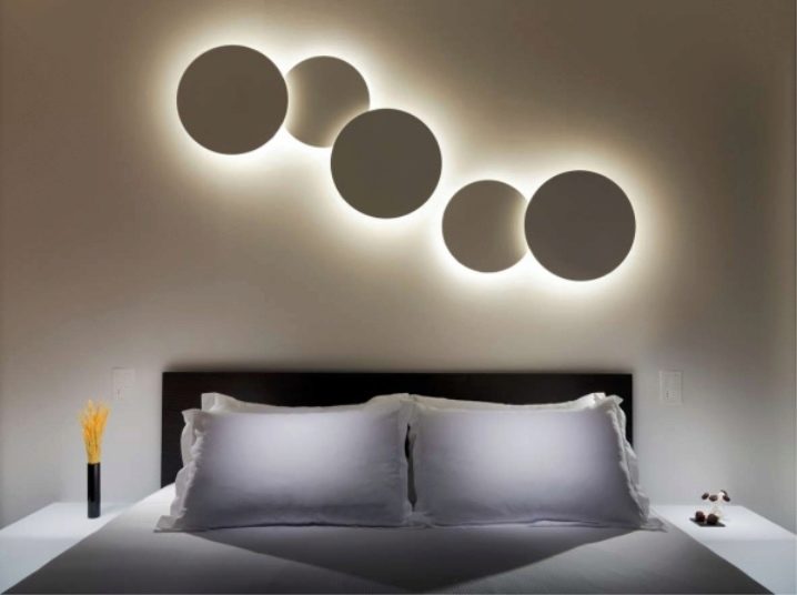 Lampes originales, cachées derrière des éléments décoratifs, créant un effet flottant. Ils seront une excellente solution pour décorer une pièce dans le style du minimalisme ou de la haute technologie.