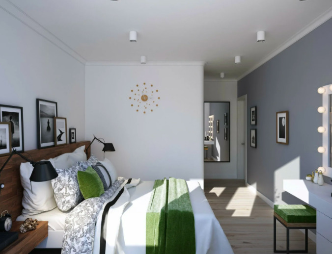 En conséquence, la chambre reçoit un éclairage plus lumineux et plus inhabituel, ce qui crée un haut niveau de confort pour les propriétaires.