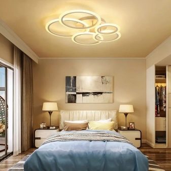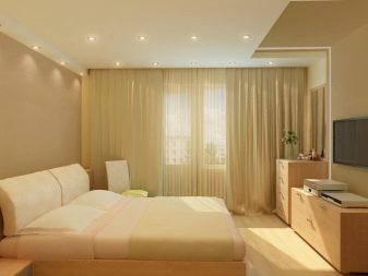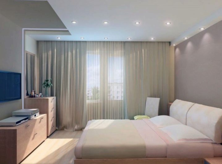 Lorsque vous placez des lampes au plafond dans la chambre, vous devez respecter les exigences développées par Rospotrebnadzor. Cela rendra l'éclairage de la pièce confortable et le divisera en zones.