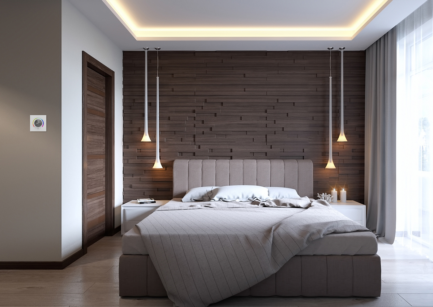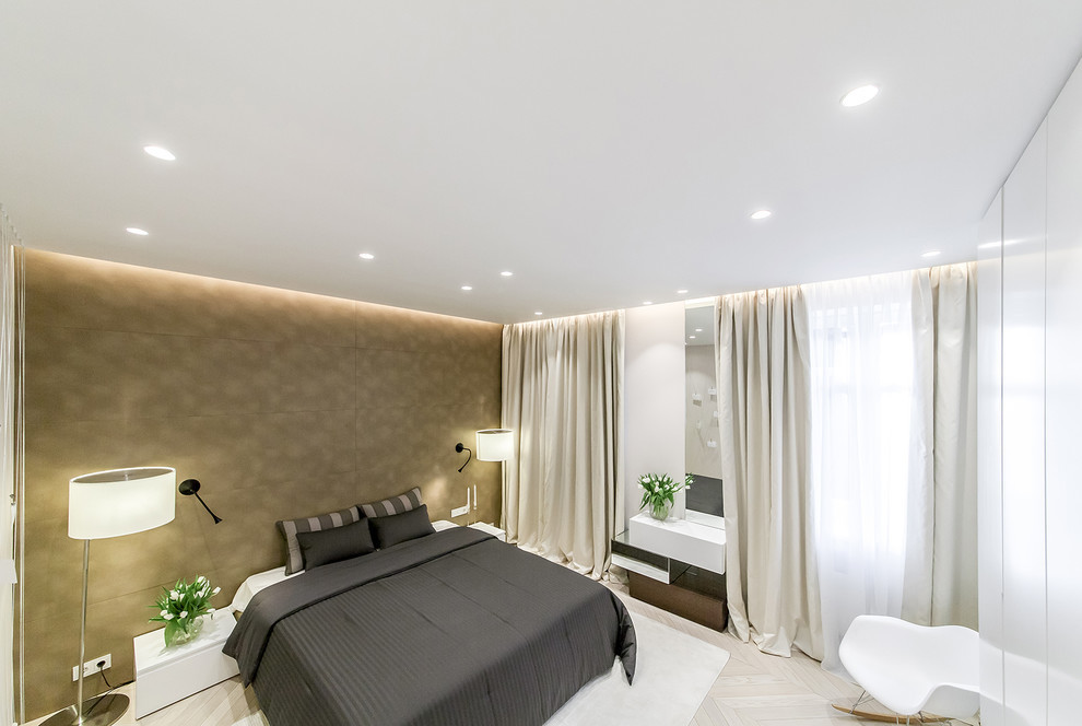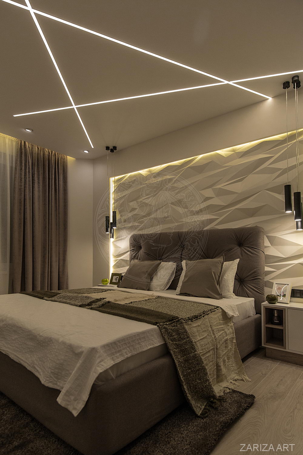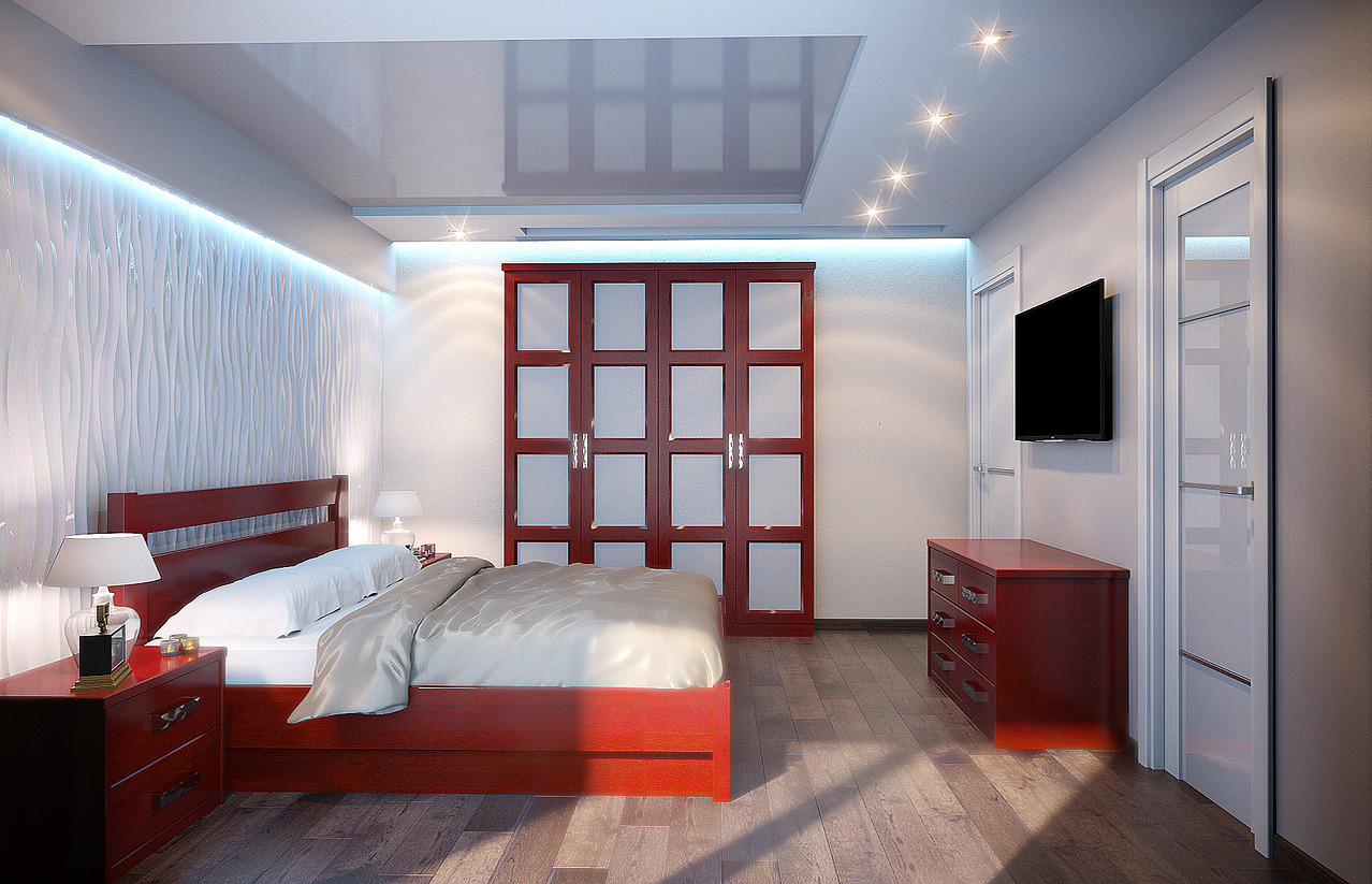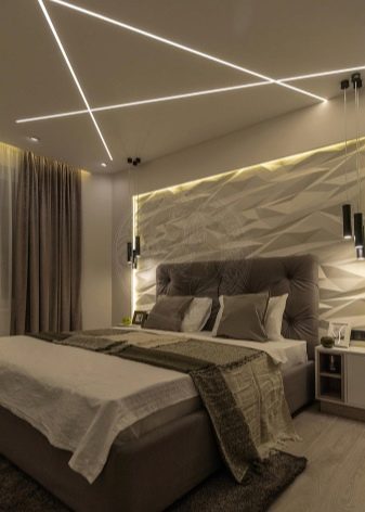 - Lors de la conception de l'éclairage, vous devez penser à la façon dont il sera situé. Cela vous permettra de diviser la chambre à coucher en zones, de déterminer le but de la lumière, de respecter les normes d'éclairage minimales pour cette pièce en particulier.