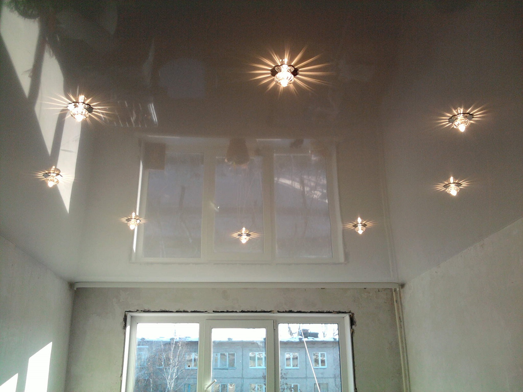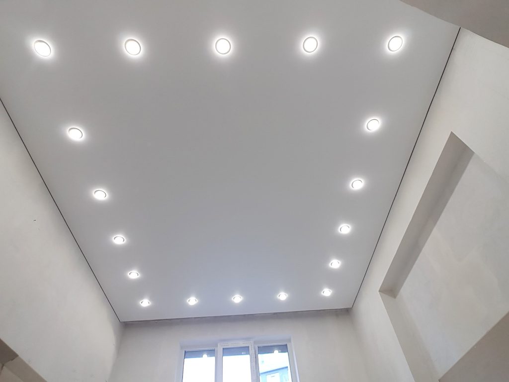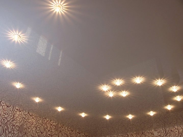 - Si un plafond tendu brillant est utilisé, vous pouvez utiliser un nombre beaucoup plus petit d'ampoules ou d'appareils à faible puissance.Ceci est possible grâce au fait que la structure suspendue améliore la luminosité des appareils d'éclairage.