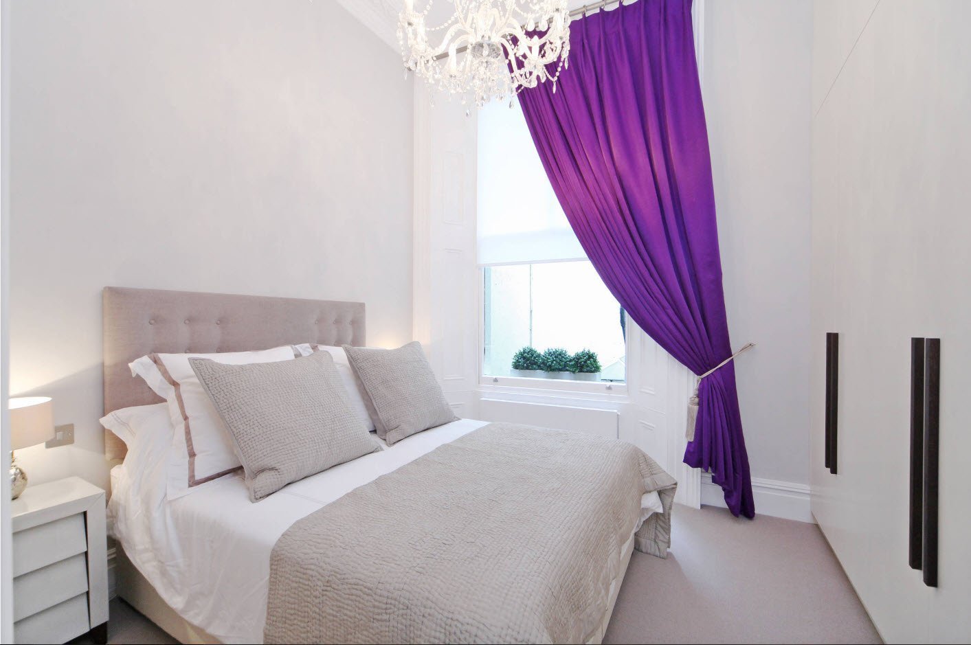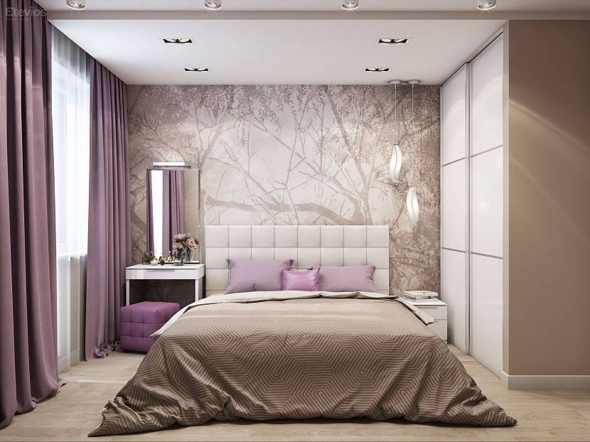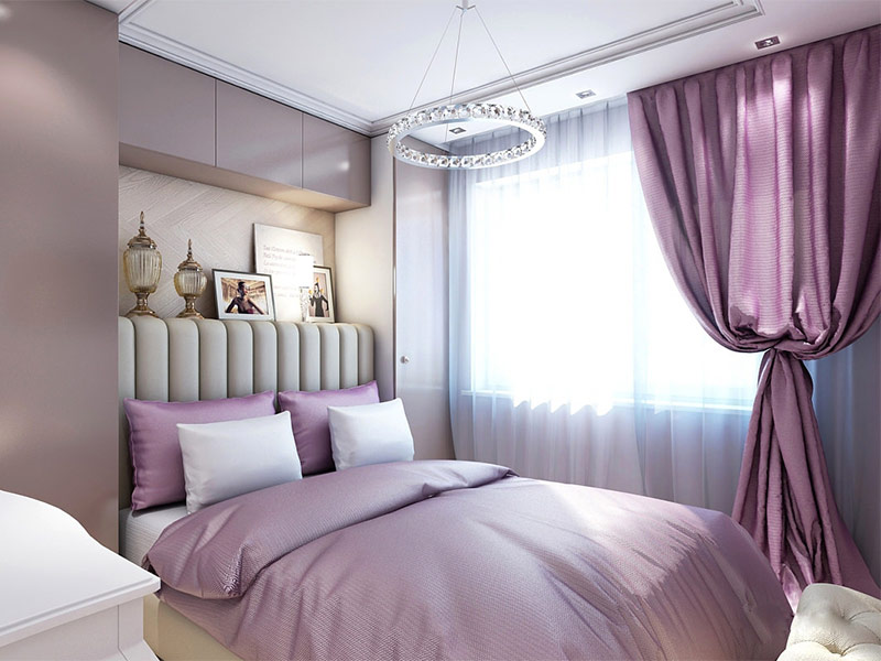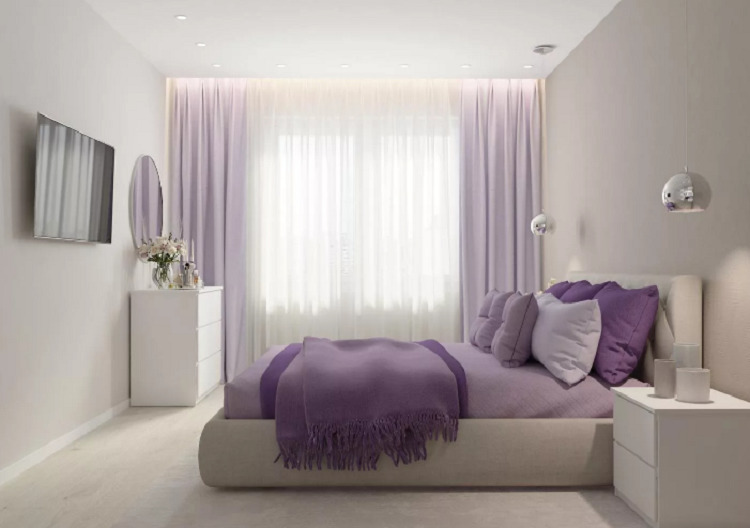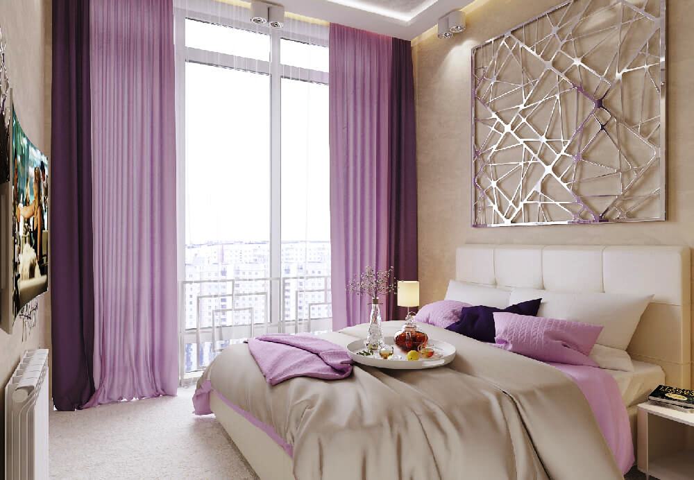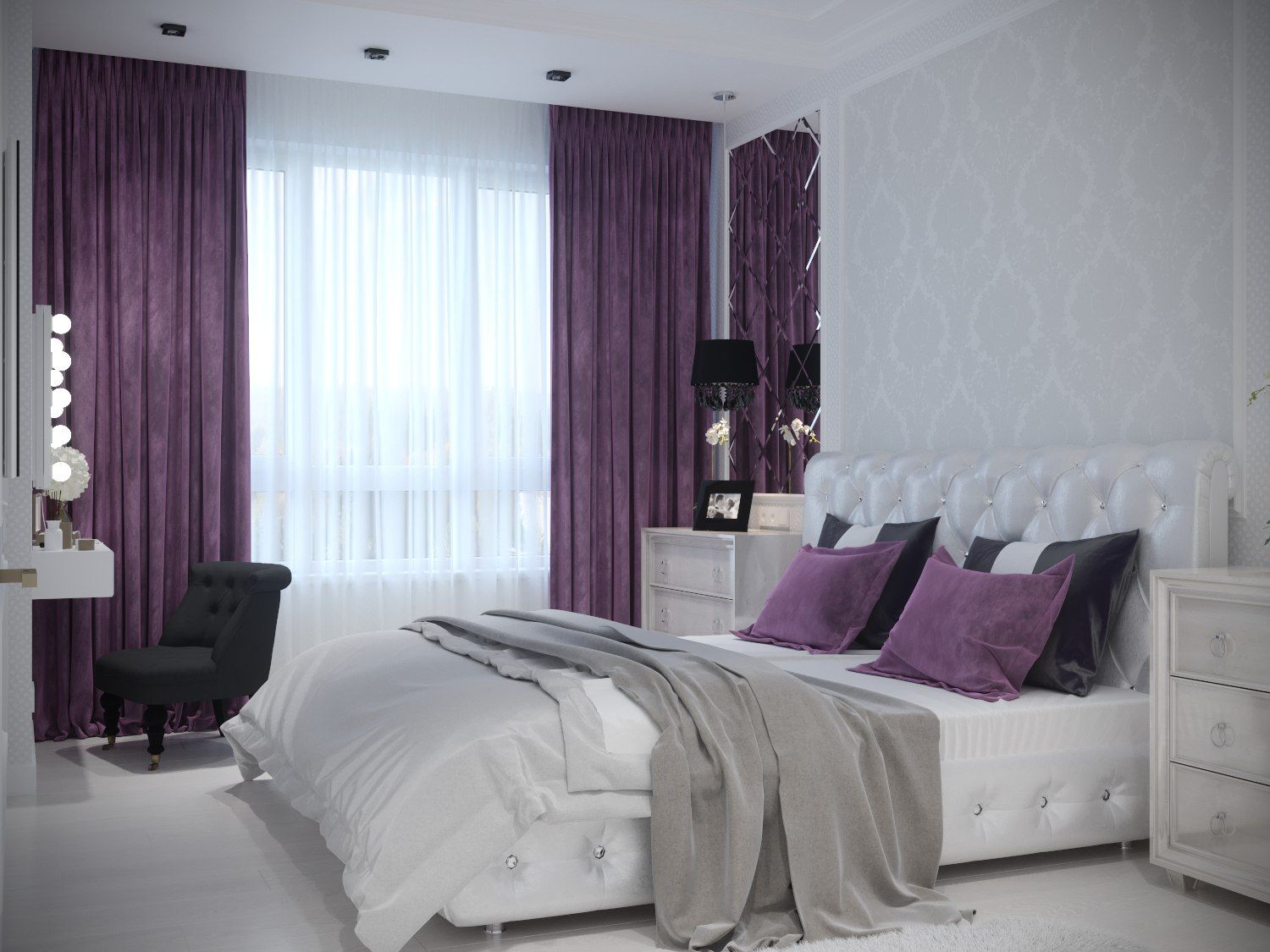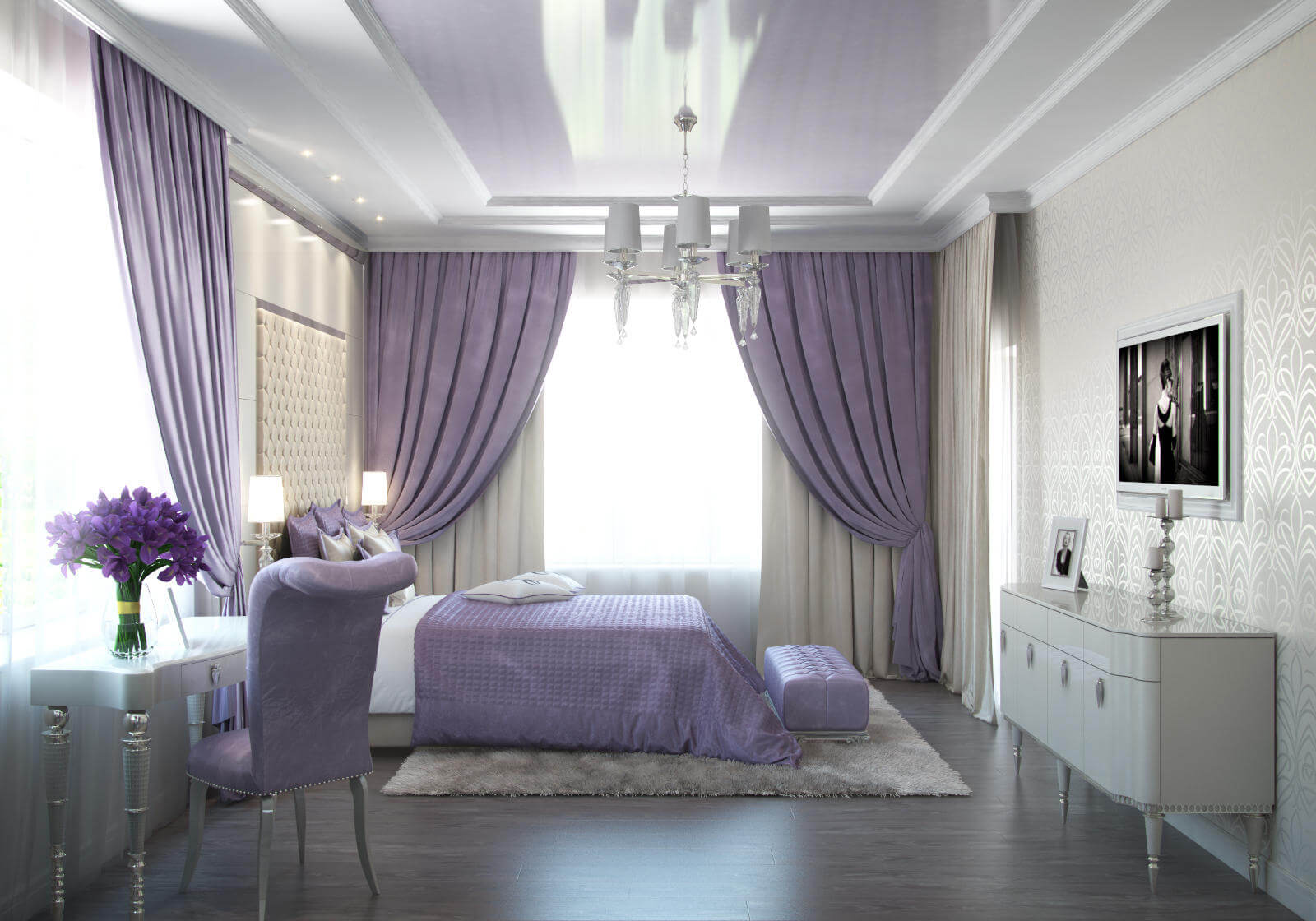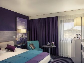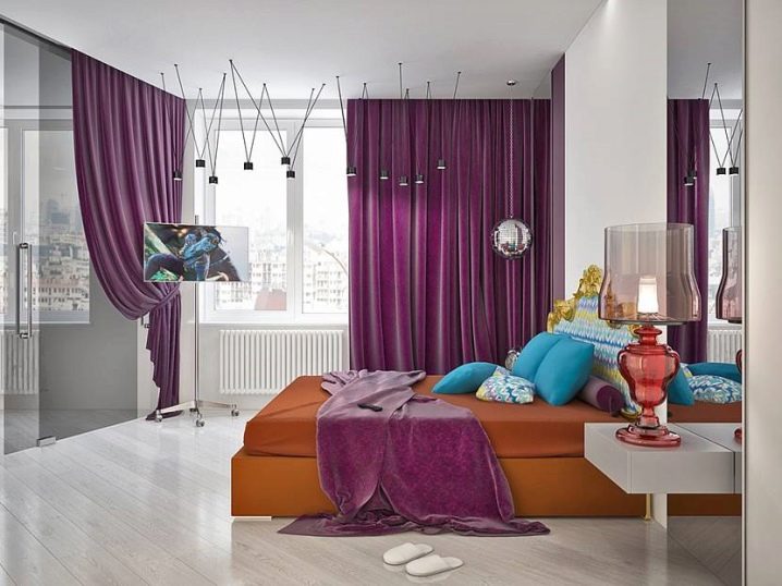 La décoration de la chambre avec des rideaux violets peut être différente. Ceci est prouvé par des exemples de cette galerie de photos :