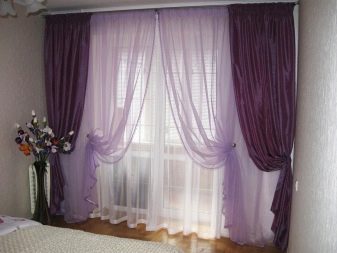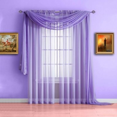 - sélection de rideaux violet clair translucides pour les conceptions de fenêtres asymétriques;